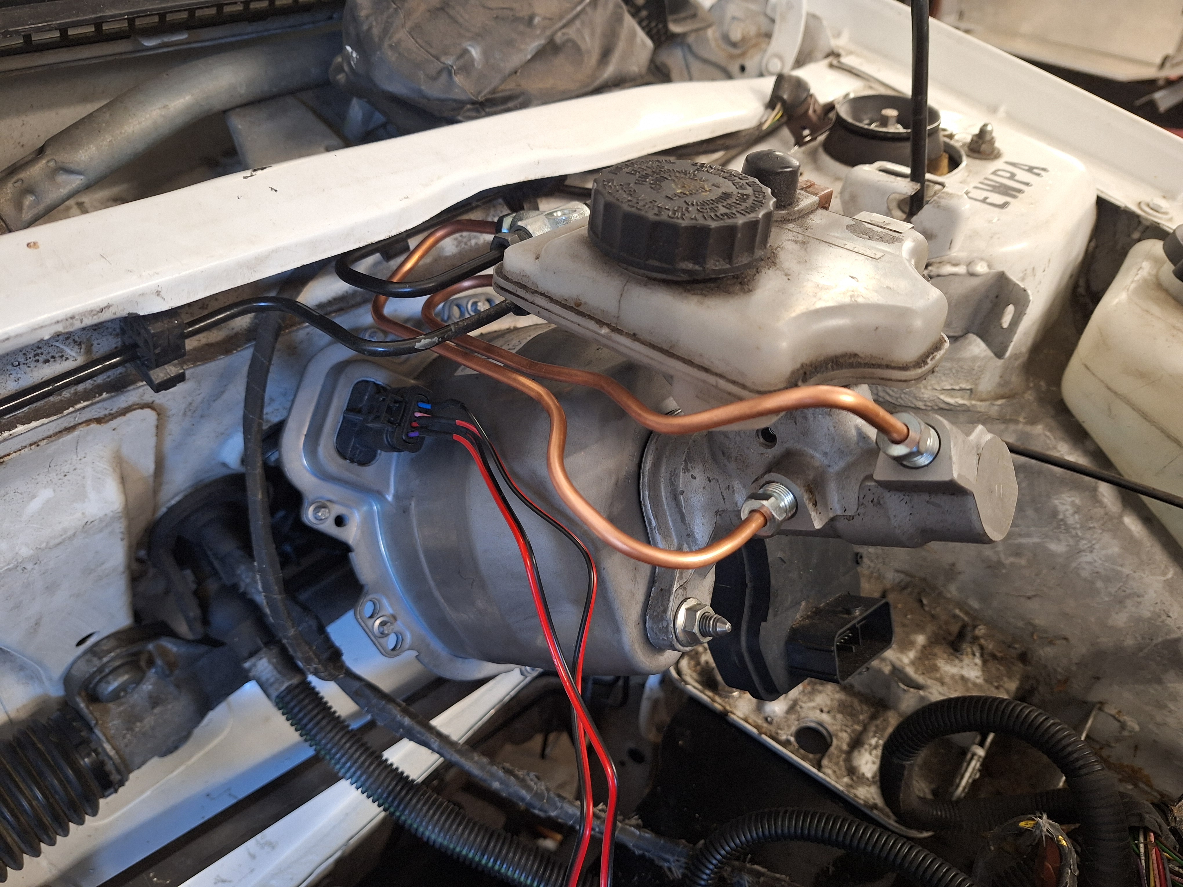 I fitted the Ebooster a while ago. Had to order brake line and fittings to connect all the lines. The original master cylinder had 4 ports. The new cylinder has just 2 ports because all modern cars have ABS. The Saxo does not have ABS, to make the lines work I bought 2 T-pieces. The original brake lines are 5mm and have M10 nuts. The new cylinder has M12 thread for 8mm pipe. Found some M12 nuts for 5mm pipe.