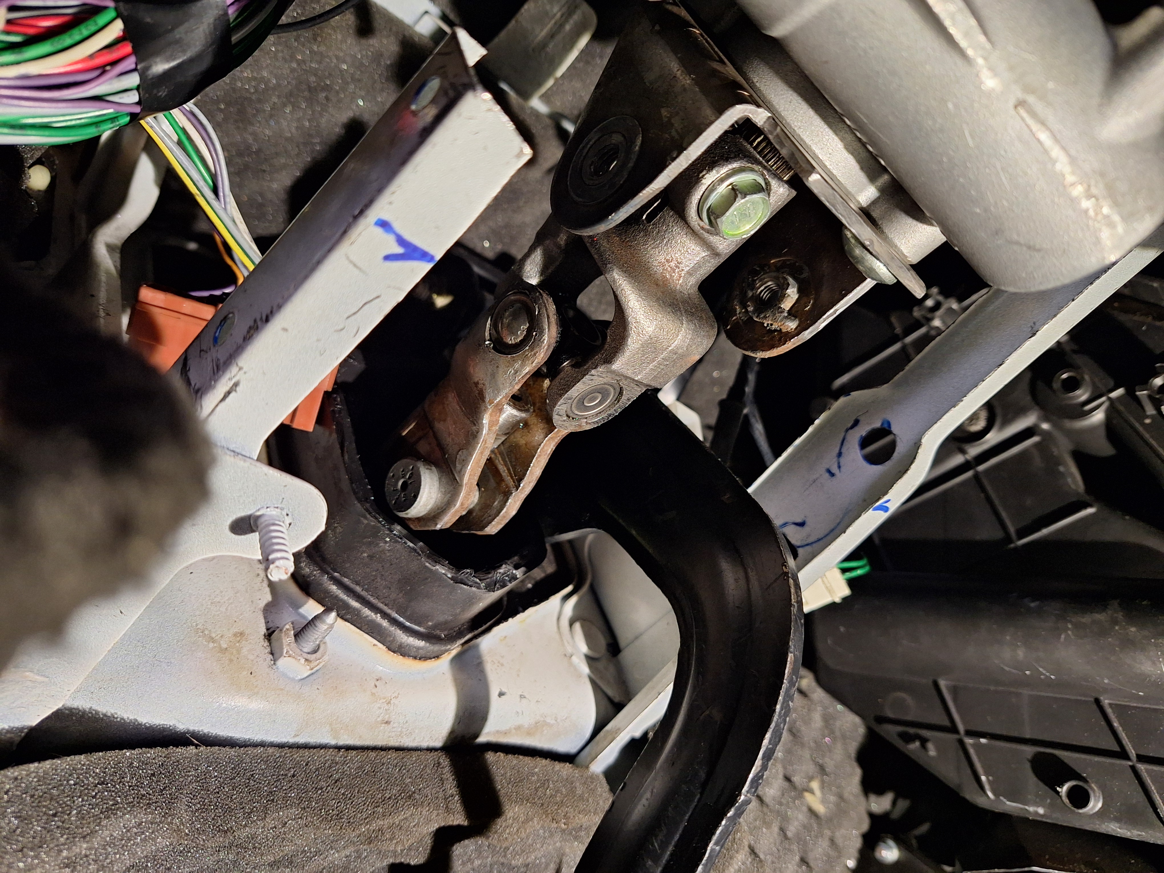 To resist the torque from the column, made a bracket to bolt the column to steering wheel supports.