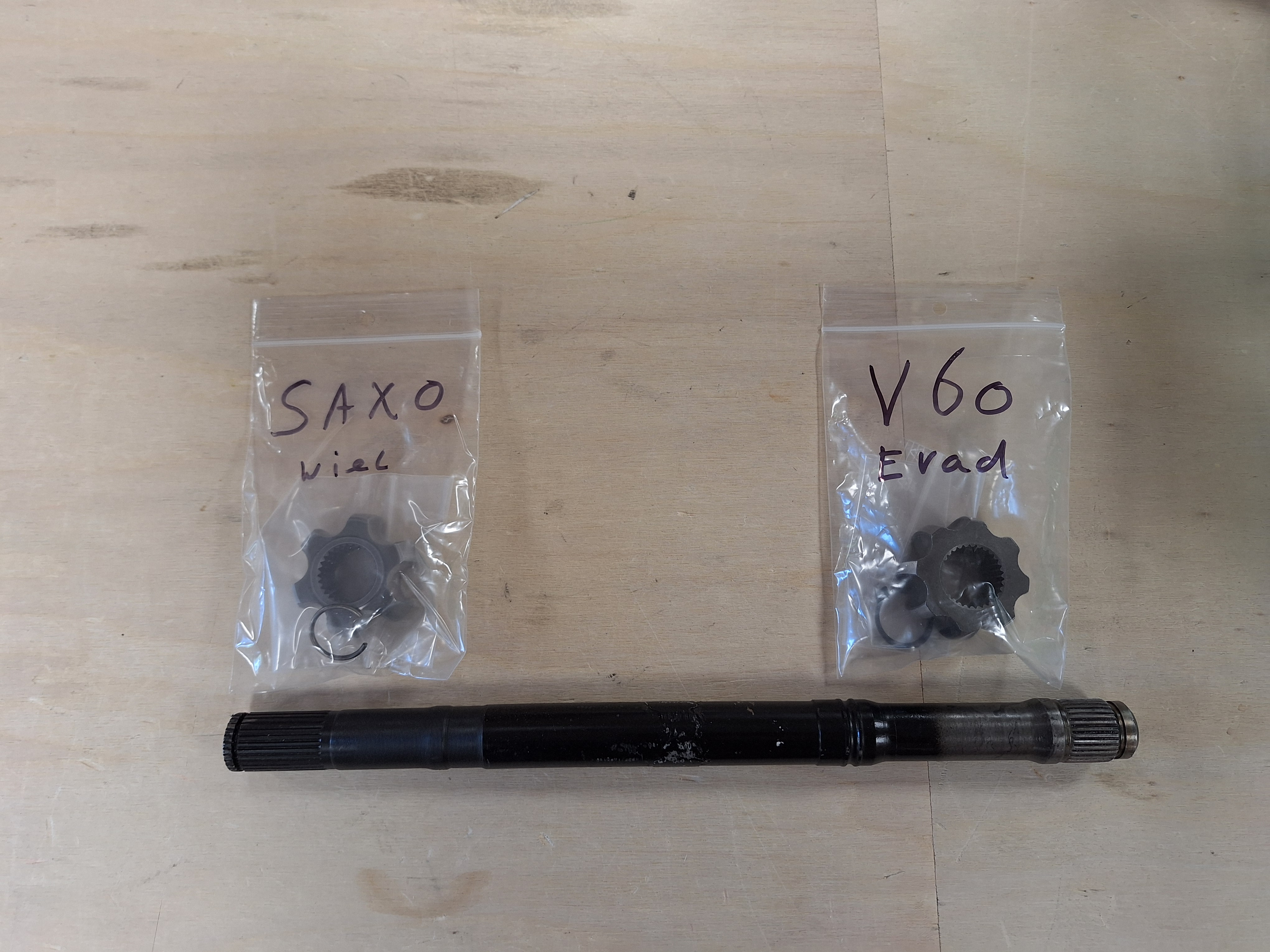 Of course the drive shaft do not fit. Got a set of drive shafts with the V60 motor. Ordered a pair of new SKF drive shafts for the Saxo. Cut them and welded them together. I am not sure if I run with the welded drive shafts or get a set made. The previous set up had welded drive shafts that lasted 50.000 km.
