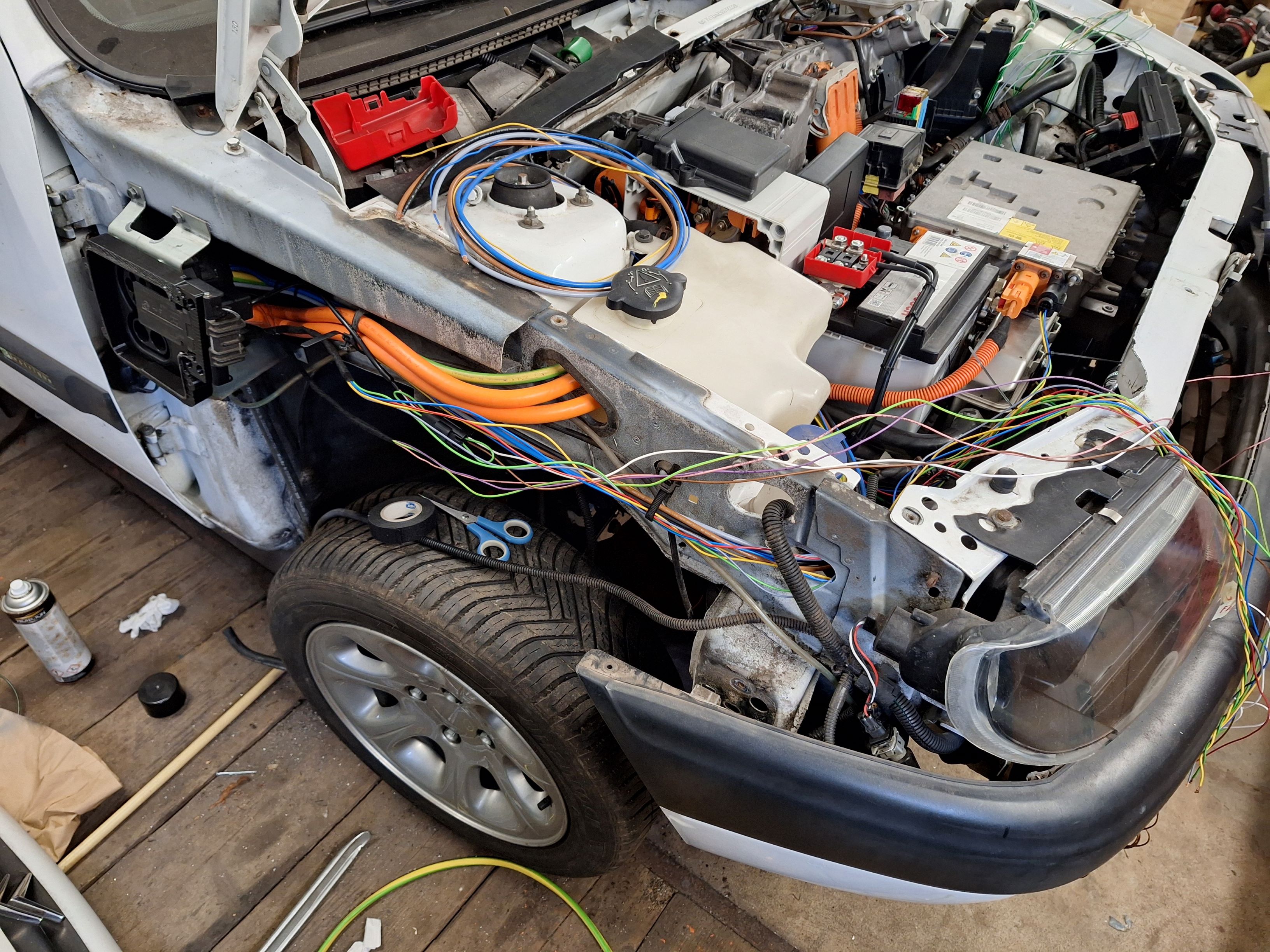 Did a lot of wiring clean up removing wago connector and replacing them with butt crimps and heatshrink. For programming and changing setting on the Open inverter, Zombie and the Foccci I wired the CANbus to the OBD port. By some miracle the pins from the Zombie enclosure fit the OBD connector :o And it's a renault part? on a citroen :?:
