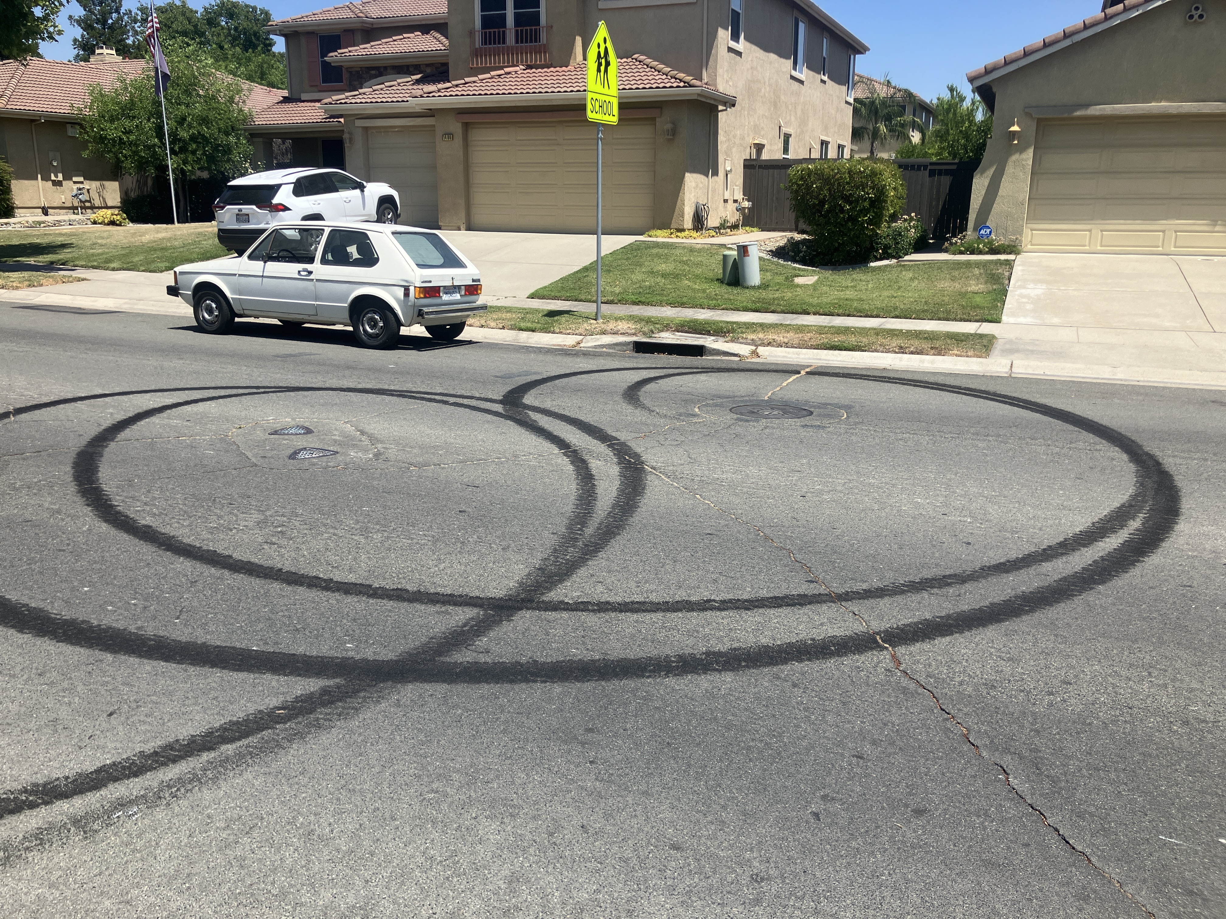 Considering the weather there I don't really think it's fair to call that a burnout, as it's just what happens when a half-molten tire sitting in the sun for the afternoon makes contact with asphalt in normal operation.