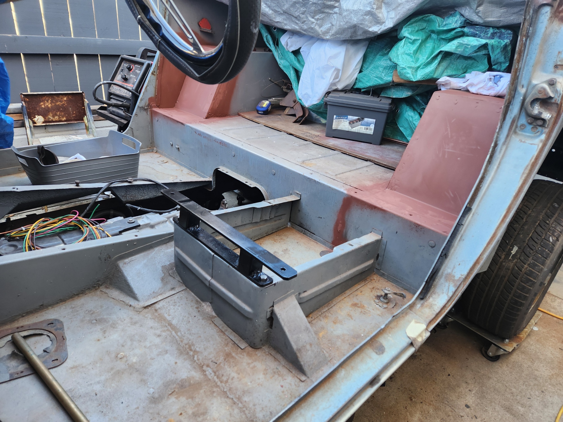 In order to get a few more inches of leg room, I have to either move the seats up or back. I'll do a little of both. This is a mod that other Scout owners have done, so it's a path well trodden. The Scout used to have dual fuel tanks inside this bulkhead, so the space is no longer needed