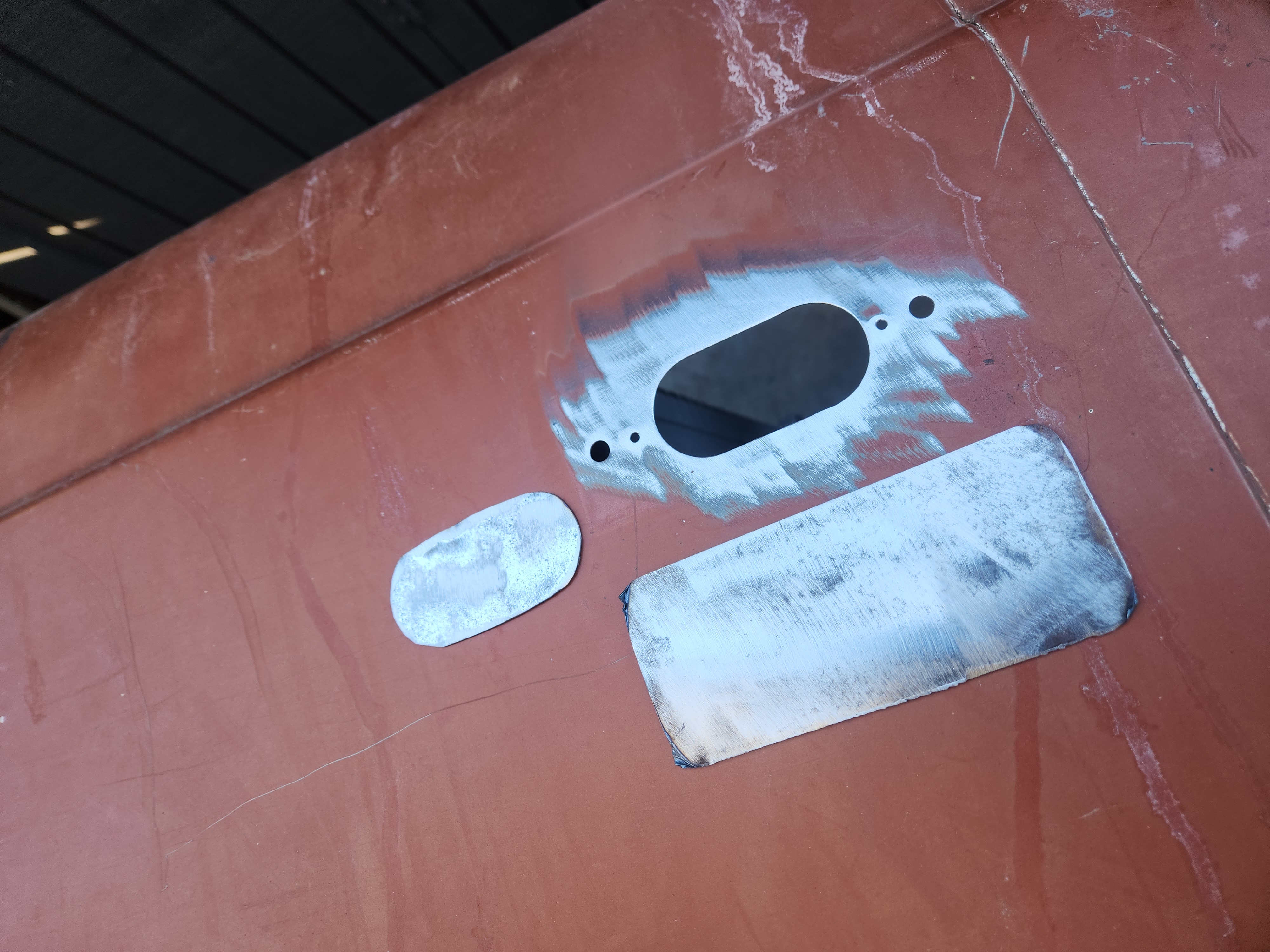 The new panel has holes for side markers and the other side of the Scout does not, so this hole has to go too
