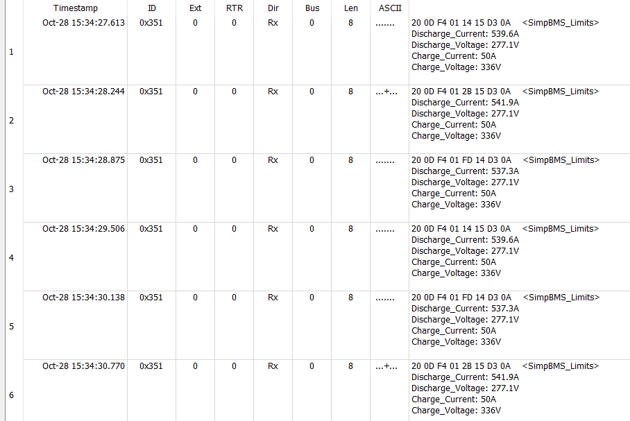 et0 wrote: Thu Oct 03, 2024 12:26 pm idcmin and idcmax under "parameters" remain at the values I originally set, not what the BMS is transmitting. Should they reflect the received values?