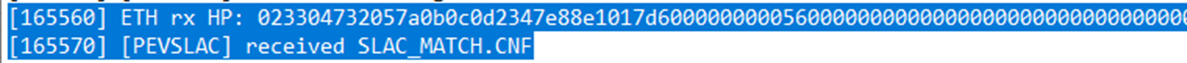 2. In single charging sessions on each charger, check whether both cables of the charger have different MAC addresses. The MAC address of the charger can be seen in the SLAC_MATCH.CNF message, e.g. here: