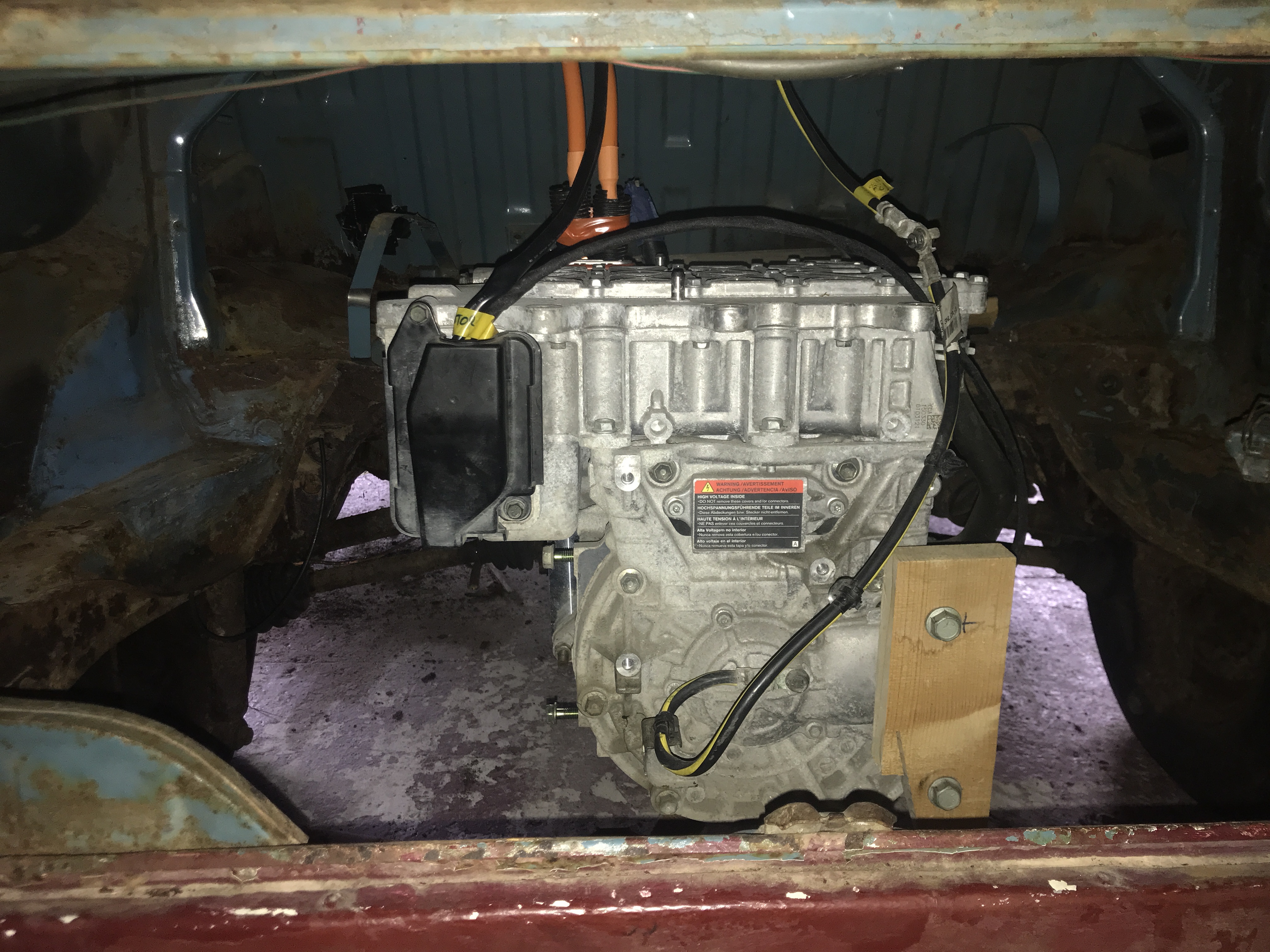 So next step will be to put the PDM in the passenger space with the original Leaf battery pack, just as a test, with the motor mounted to the transmission to see what other problems occur.