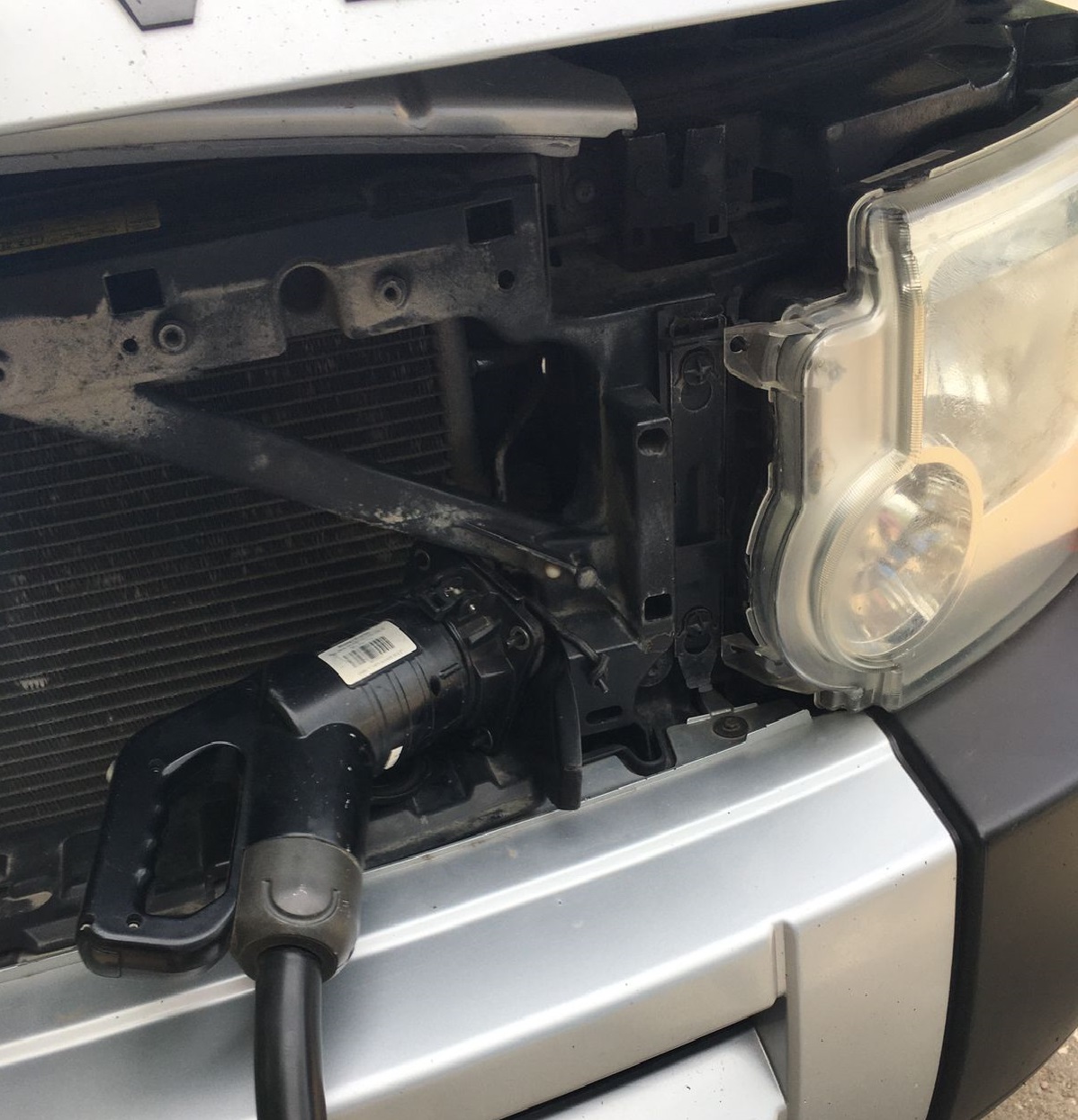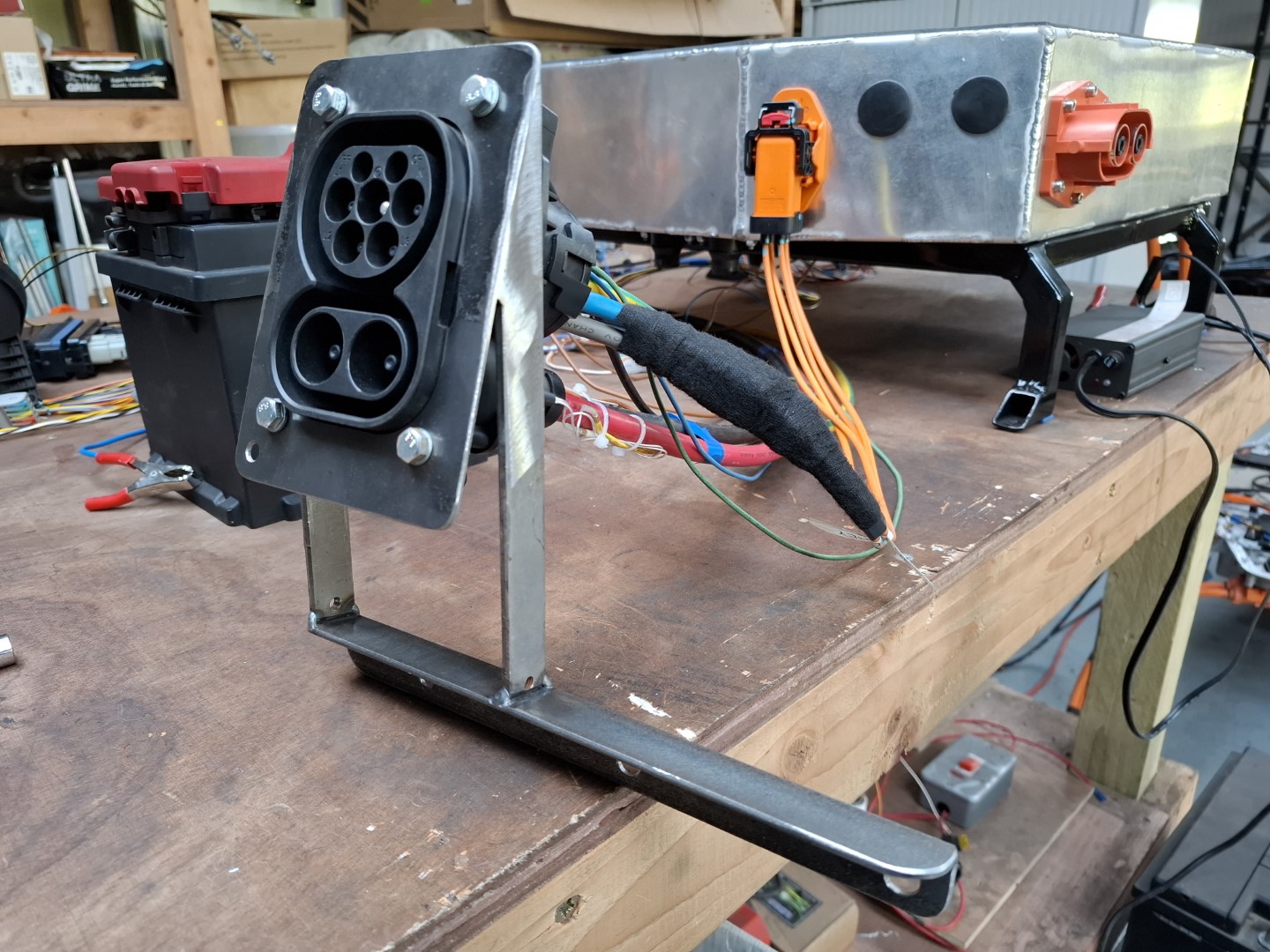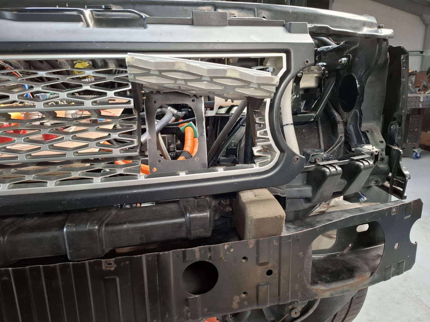Tidying up loose ends, time to finalise a location for the charge port socket. Space was tight behind the fuel filler cap, so mounting behind the front grill leaves it close to the HVJB