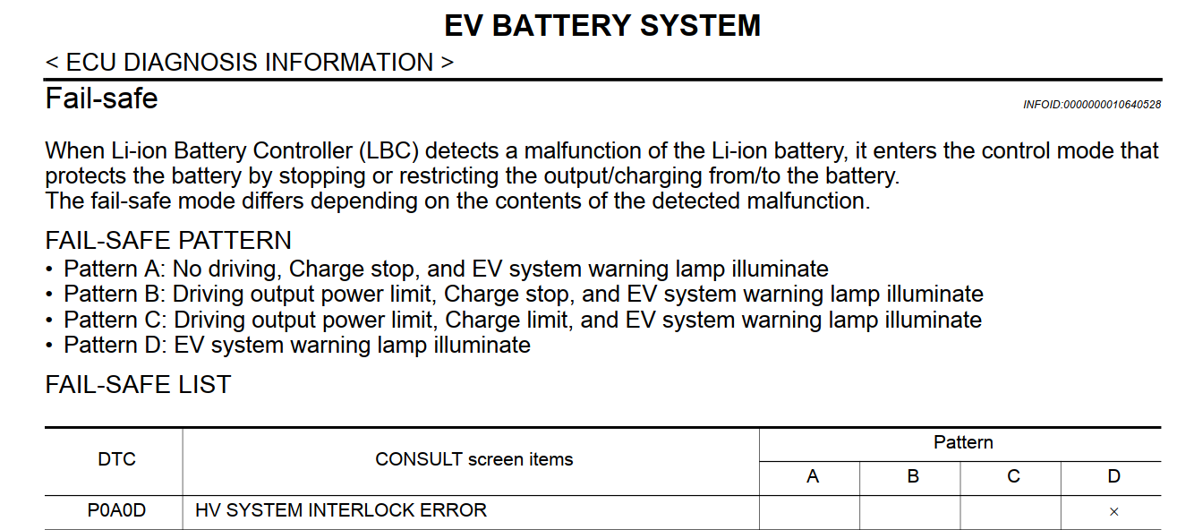 Nissan has only warning lamp lit up, as for example LBC would not give a system start OK if any battery side HV connector is not properly fit