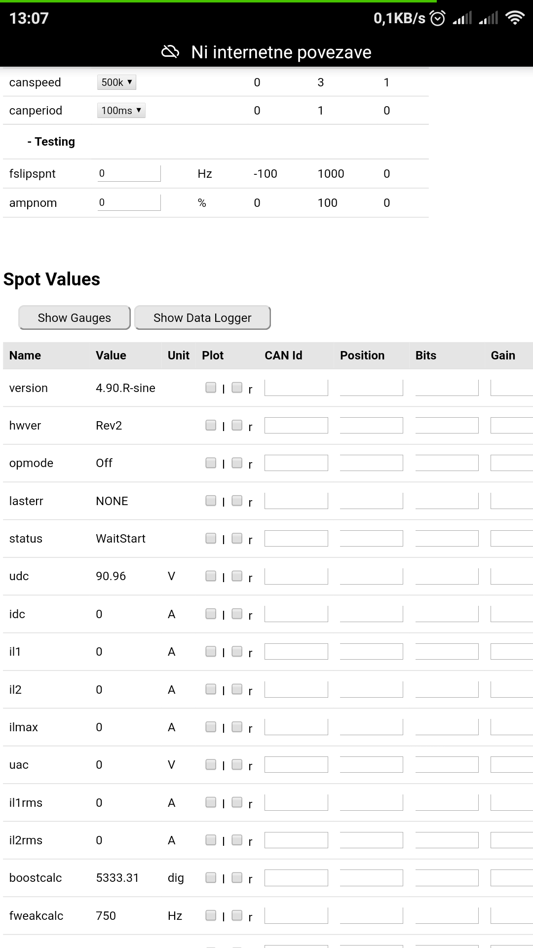 For the secondary side it shows 4.9 Sine code on rev2 hardware.