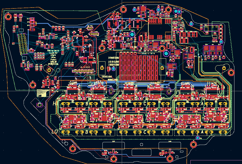 They have had fun. Looks like they've removed the HVIL current sense resistors. Couple of current sense resistor whose purpose I can't remember have gone too (maybe to do with the resolver exciter I think). CAN termination is gone on both busses I think. Who only know what the forest of footprints on the LHS is up to.