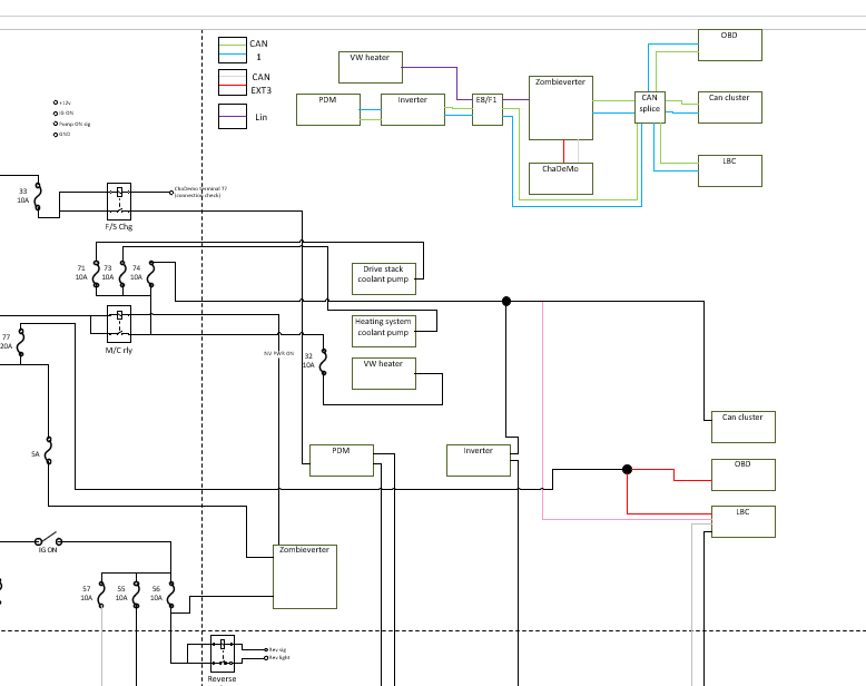 I've been also drafting a schematic for myself and one idea was to share this once I get it "right" meaning all the indicators, relays, etc work as intended. Also started to do a system level diagram, but that is more unfinished than the full blown wiring diagram. Snips intentionally blurry as these may not be correct NOR represent the reality that I currently have wired up in my setup. For this reason they should not be used for any reference at this point in time :twisted: