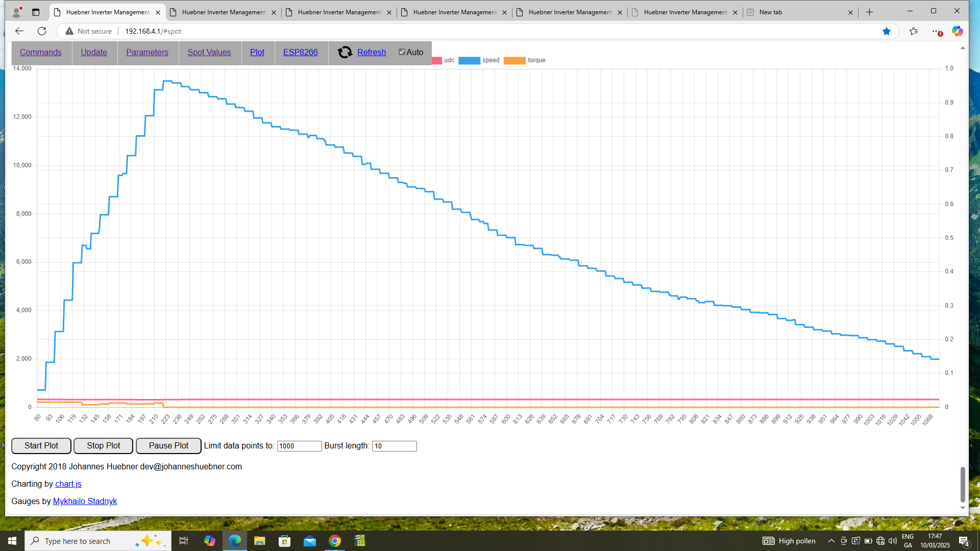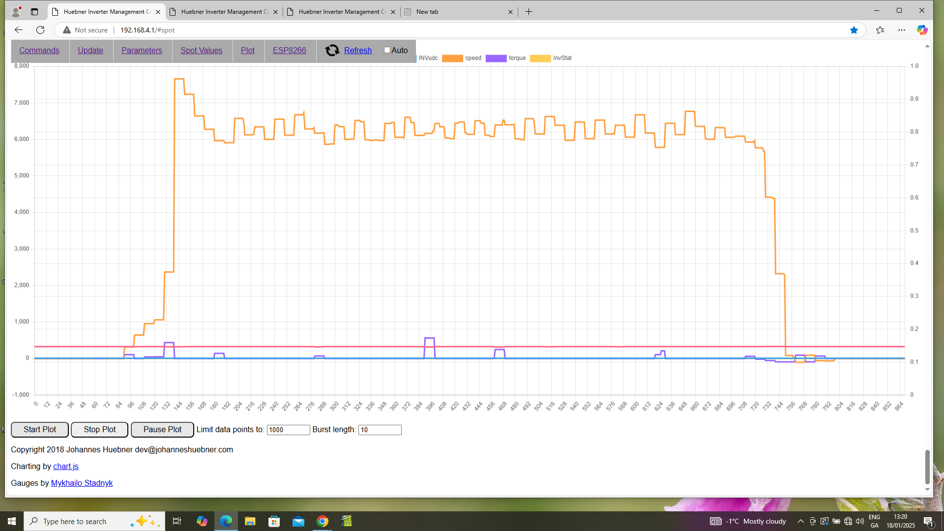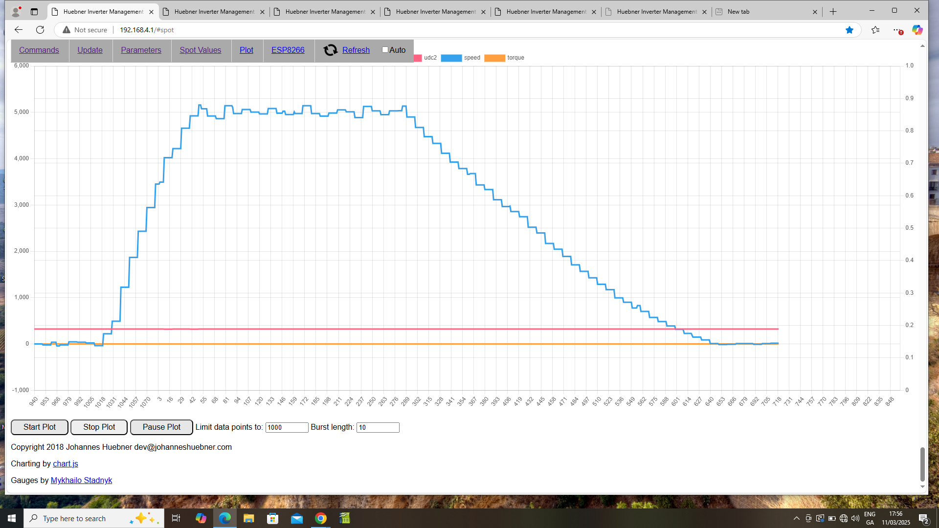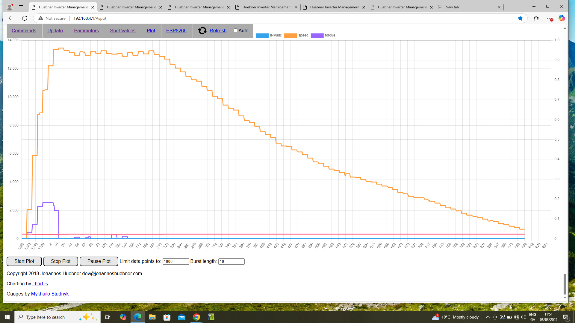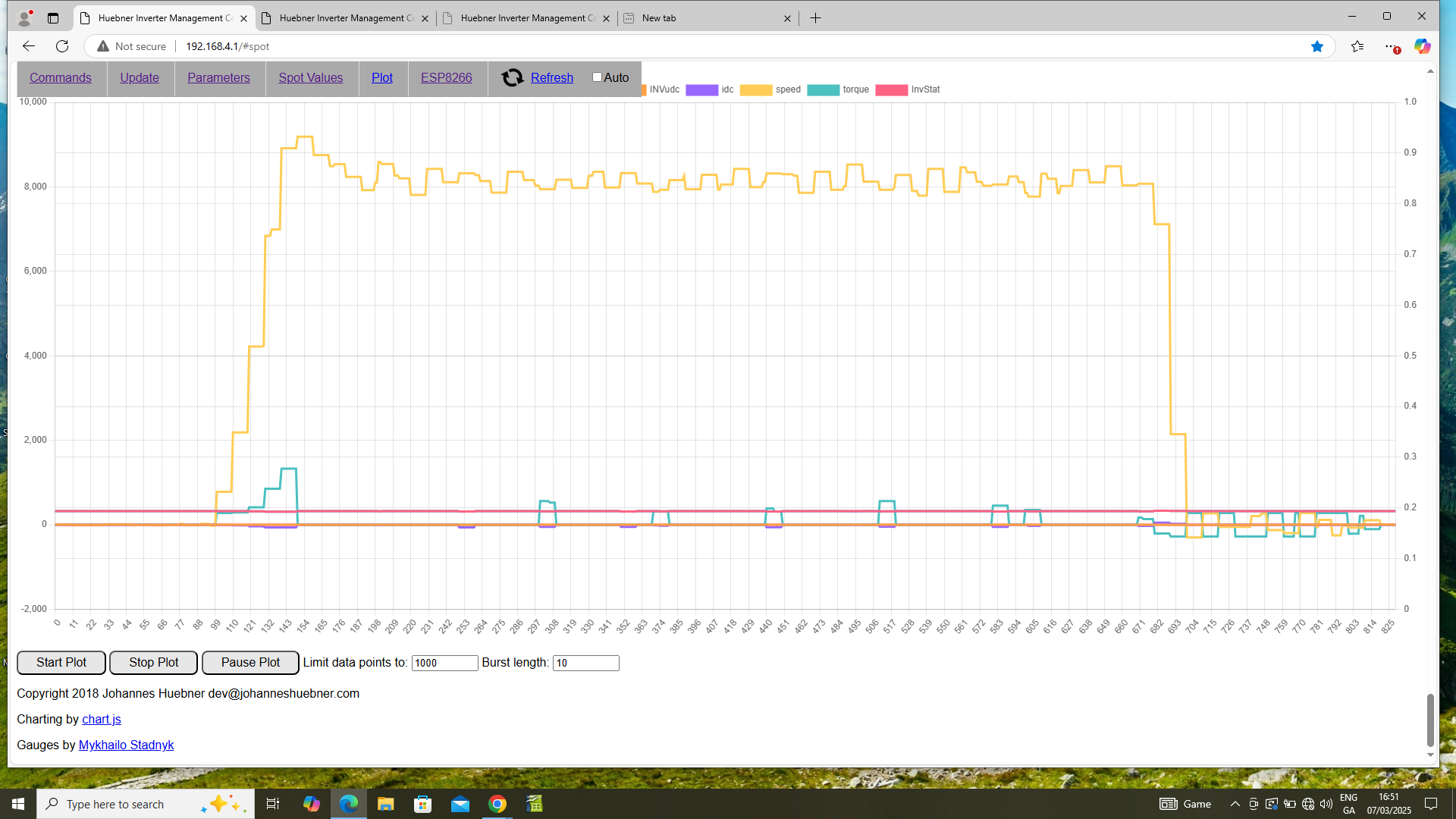 Can you get a log showing, speed? A log showing udc and idc would be useful too so see how much power she draws.