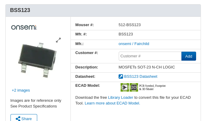 I ordered from mouser.com and it says in the description that isa BSS123 but that does not show on the part. not sure if that can be a problem.