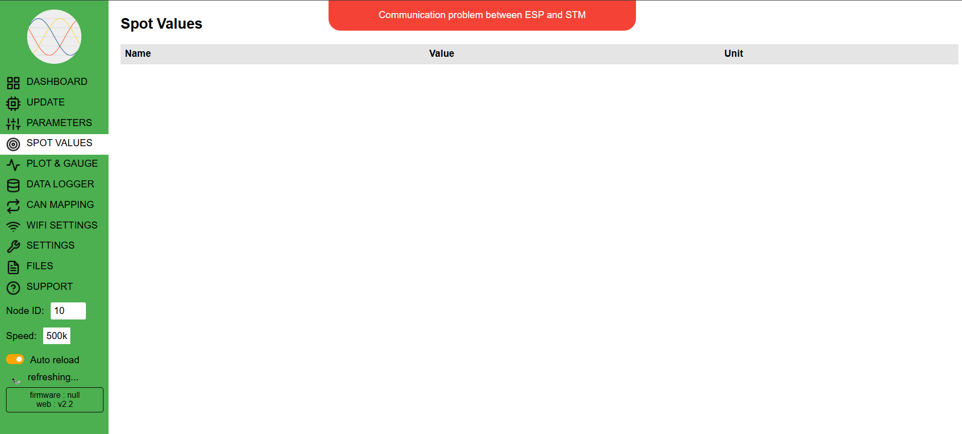 I successfully connected to the ESP32 via Wi-Fi, accessed the web interface, and updated the Node ID to 10. However, I’m encountering the following error: