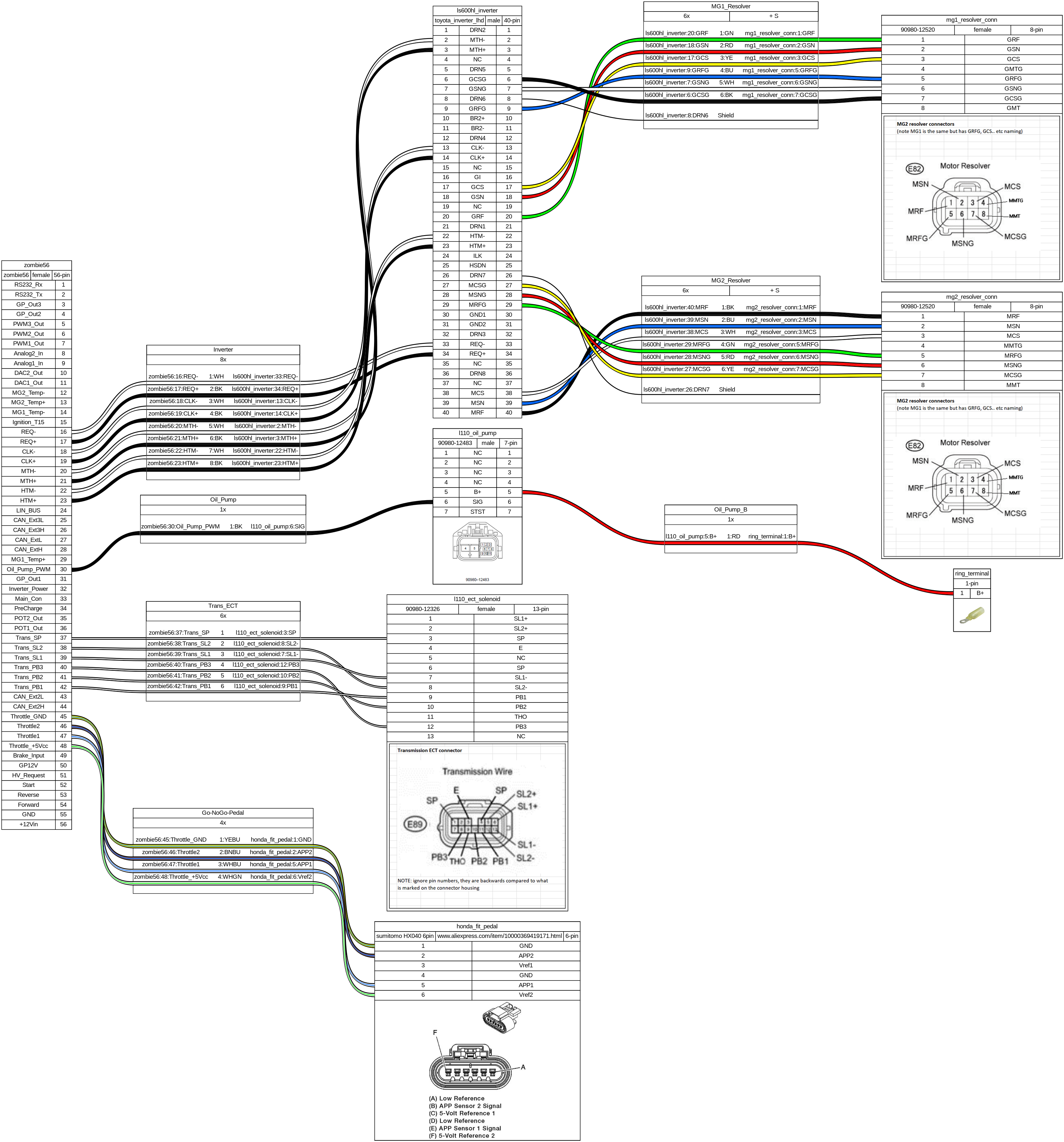 I also started on the wiring harness design. This is just the Zombieverter portion. I've also started on the t-case wiring and incorporating the original Toyota wiring.