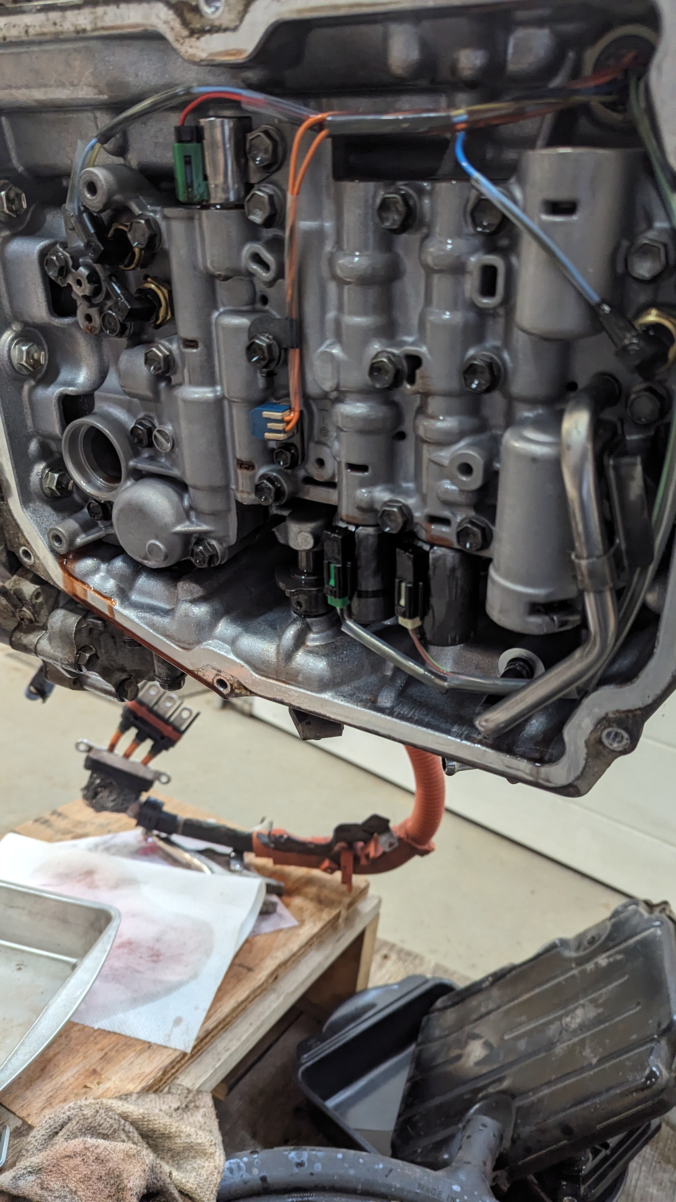That could coincide with the fact that one of the electric oil pump bearings was seized. So perhaps the transmission ran without lubrication for some time. Not sure though because it came out of a wrecked LS600H which apparently drove itself onto the lot. If it drove itself onto the lot, then the engine would have been running and thus the mechanical oil pump would have been functional.