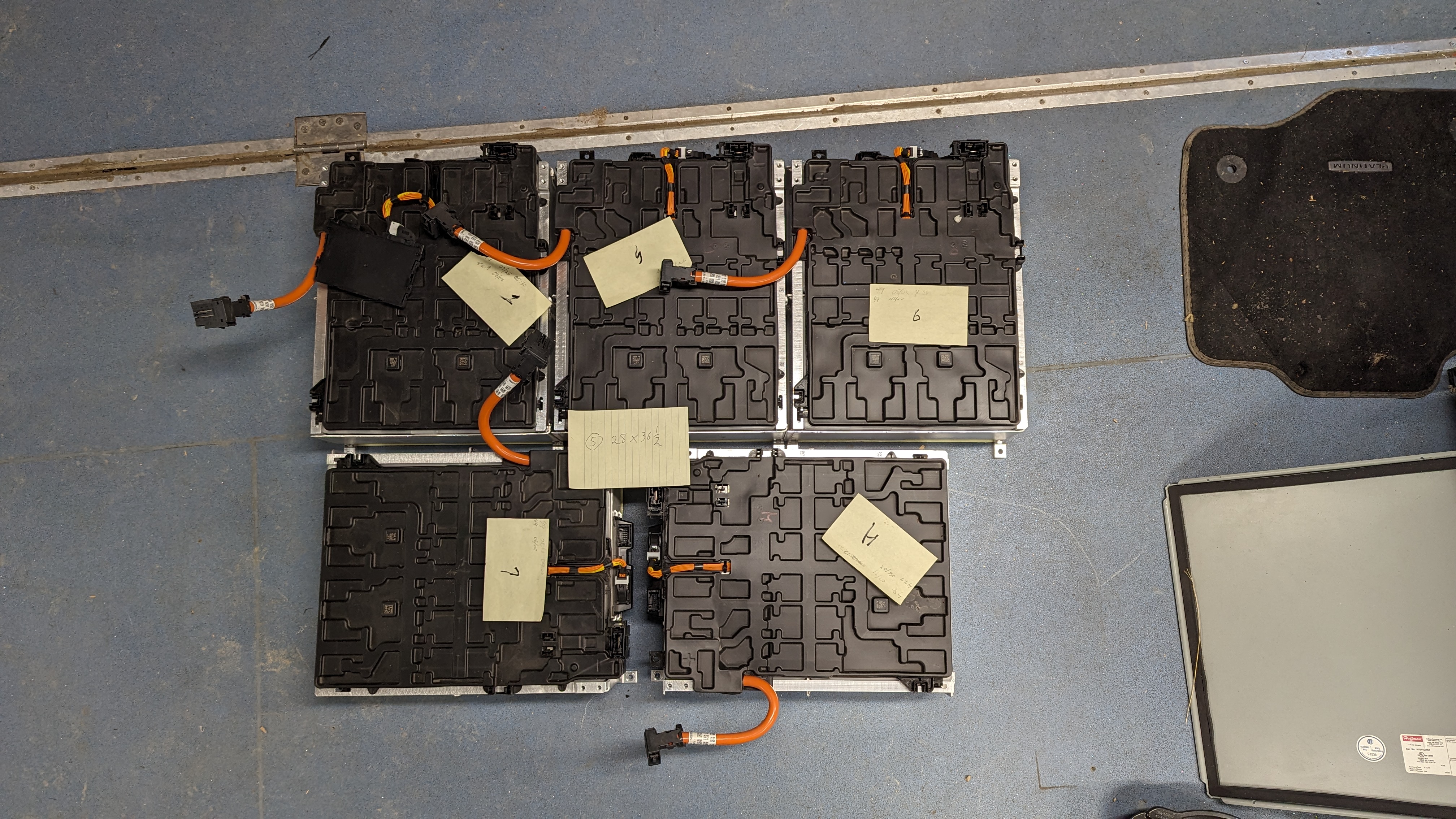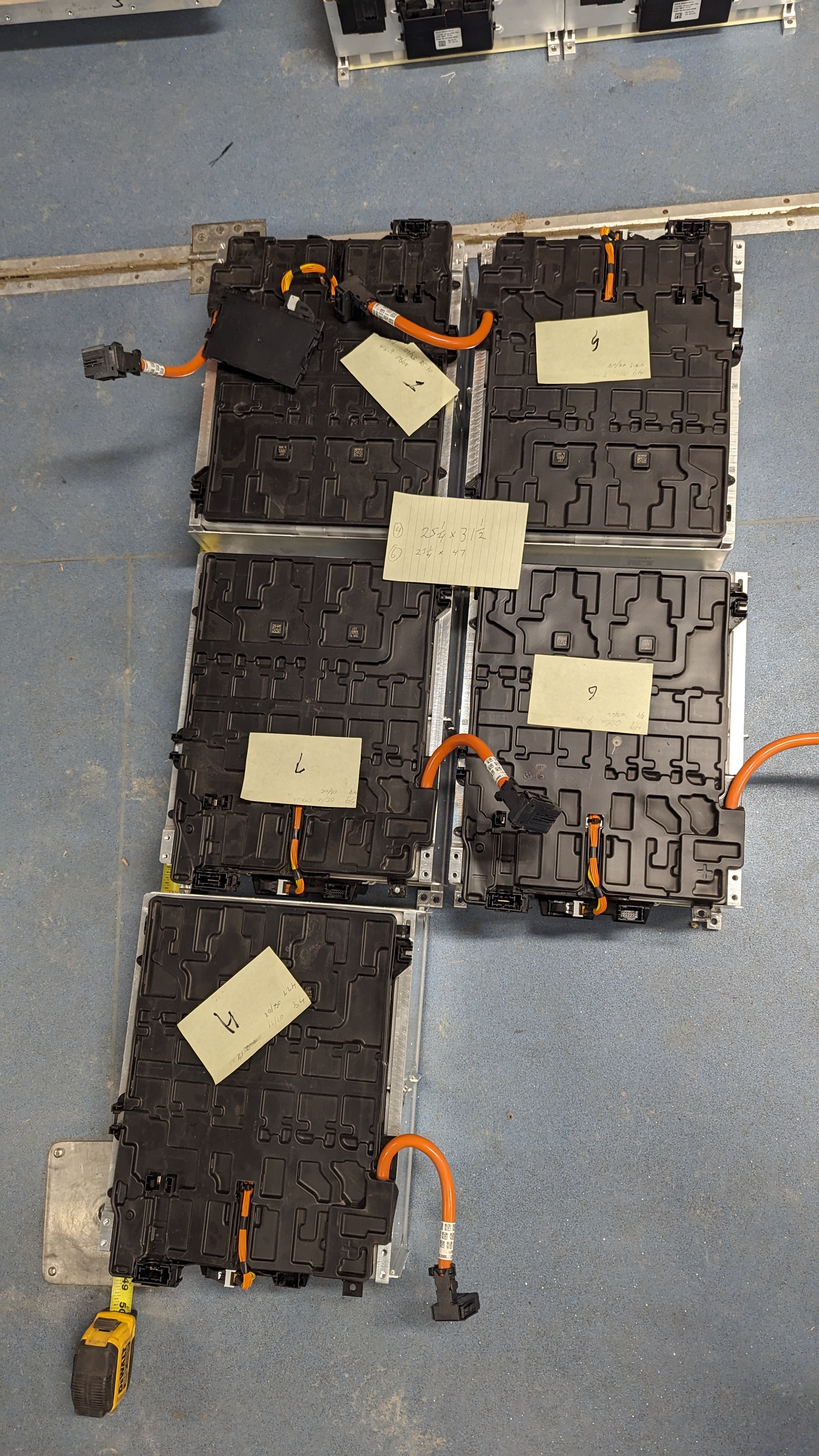 I’ve been working on trying to talk to the BMS in one of the battery packs. Turns out each of the battery packs had drained down quite a long ways and since I don’t have a 350v power supply, I decided to charge the modules individually at very low current. The good news is the battery modules charge up to at least 42v (12s; I haven’t tried to go higher than 42v) and hold their charge for a week at least. Planning to do some load testing soon.