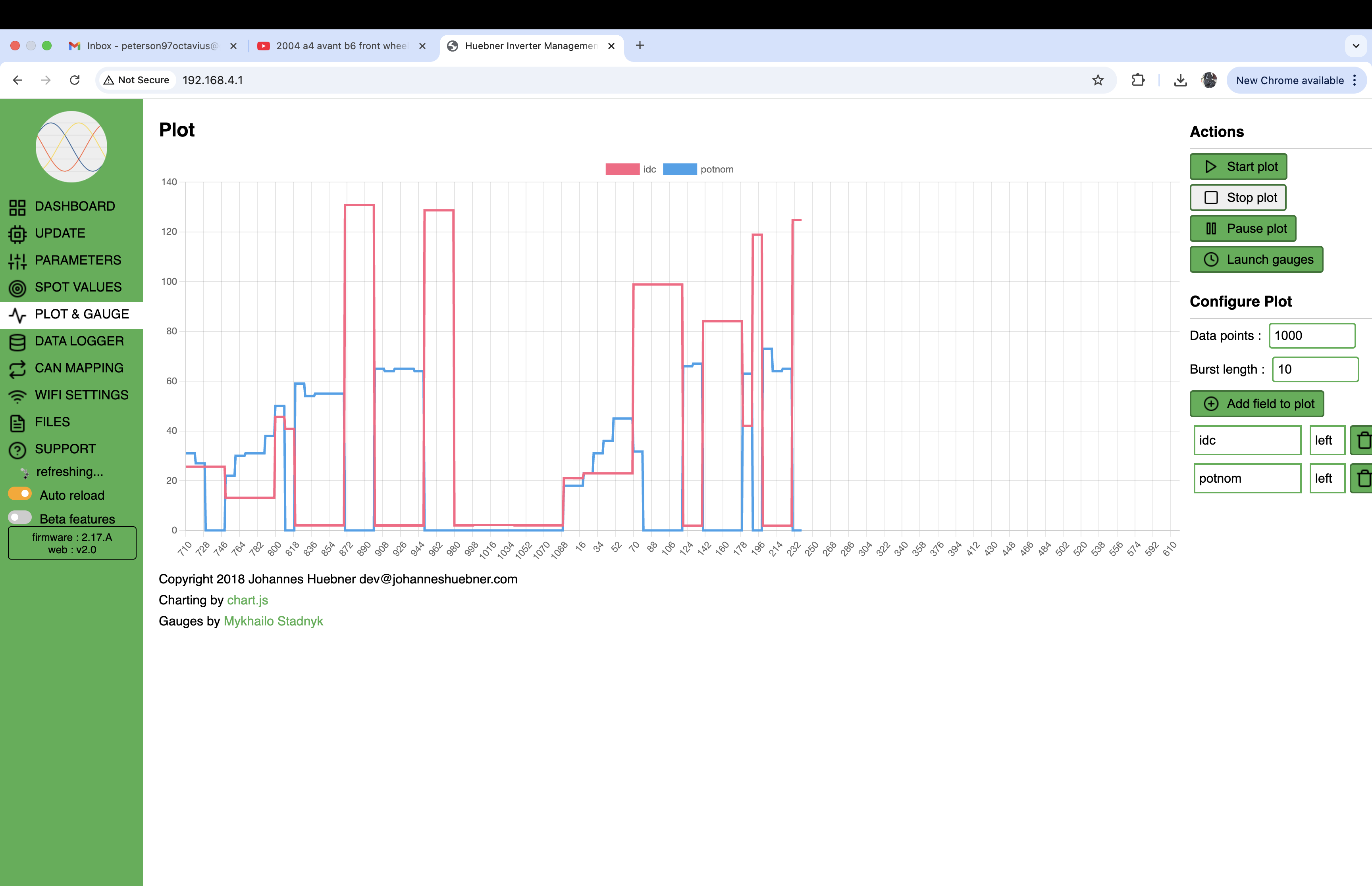 Try looking at just Potnom and idc again. I do not know the ESP32 CAN enough to tell you how to save graphs/logs from it.