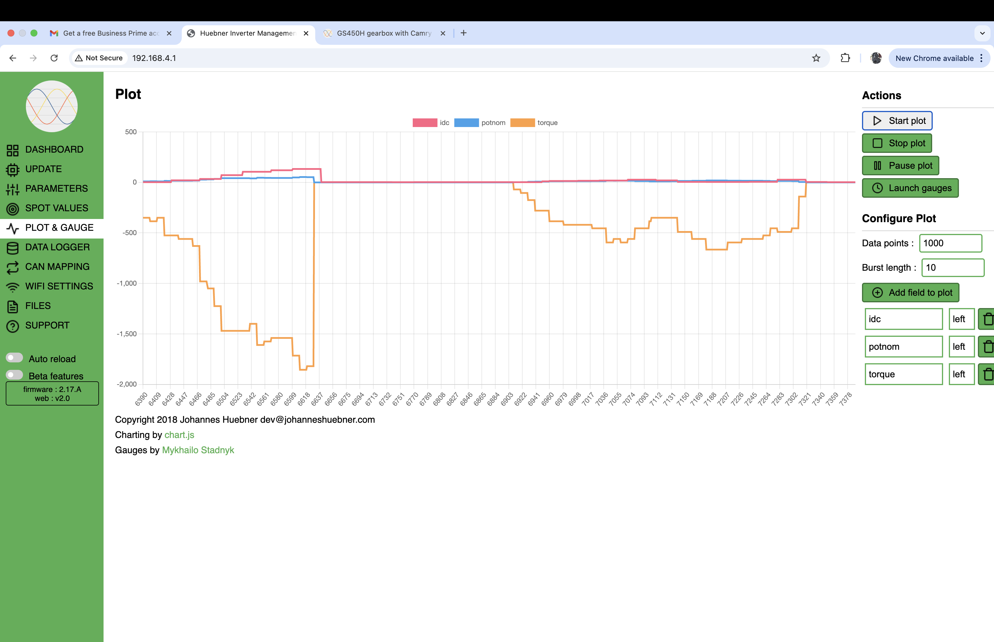 This does not sound right please review all parameters before proceeding. Disconnect the HV to your inverter and review potnom and torque and adjust your parameters to correct.PetersonOctavius wrote: ↑Thu Mar 06, 2025 11:46 pm Im running 2.17A