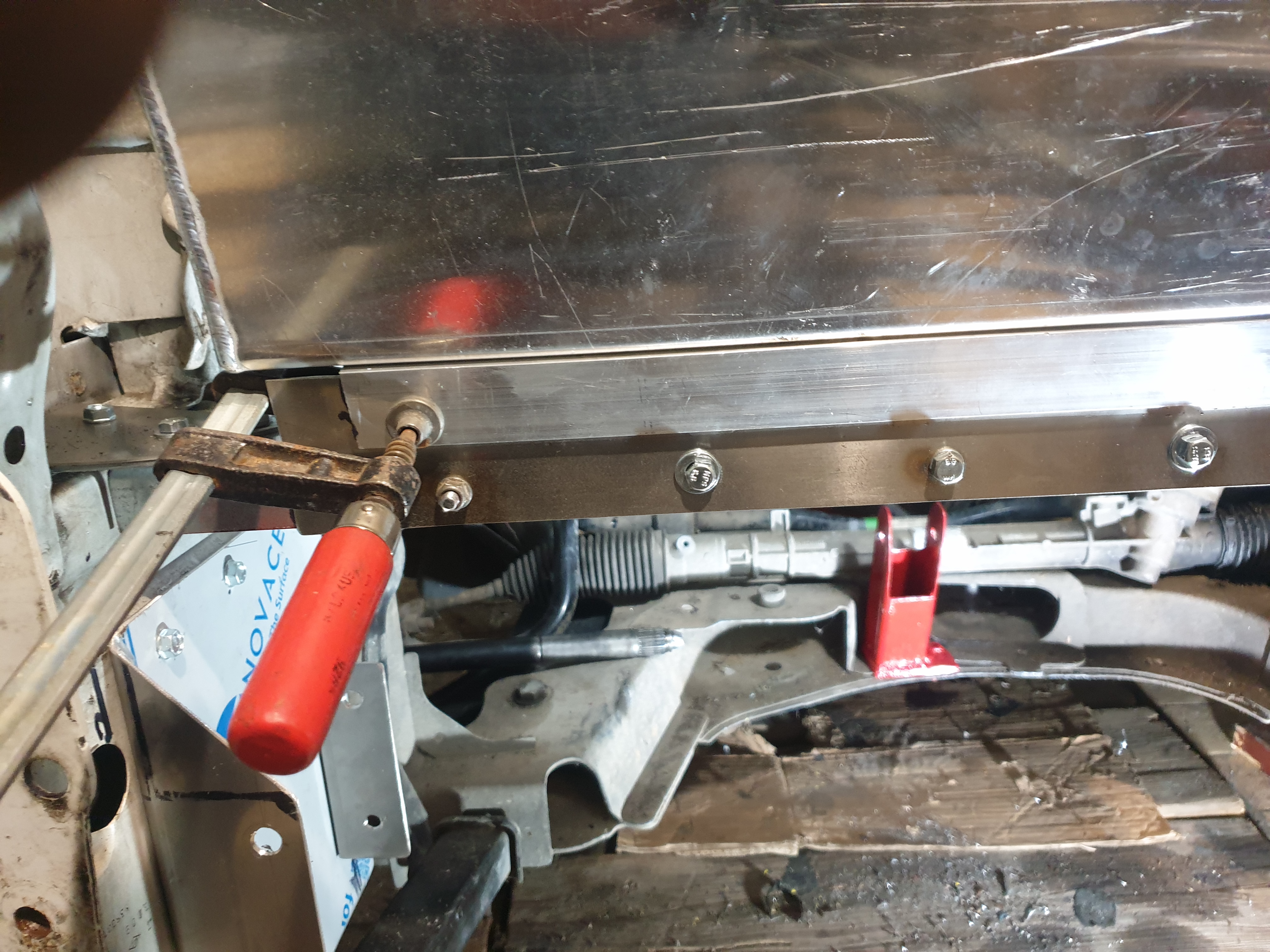 I decided to tack weld nuts behind inox plates to make assembly and dissassembly easier. From the front i will simply fit the bolts through the holes and tighten them.