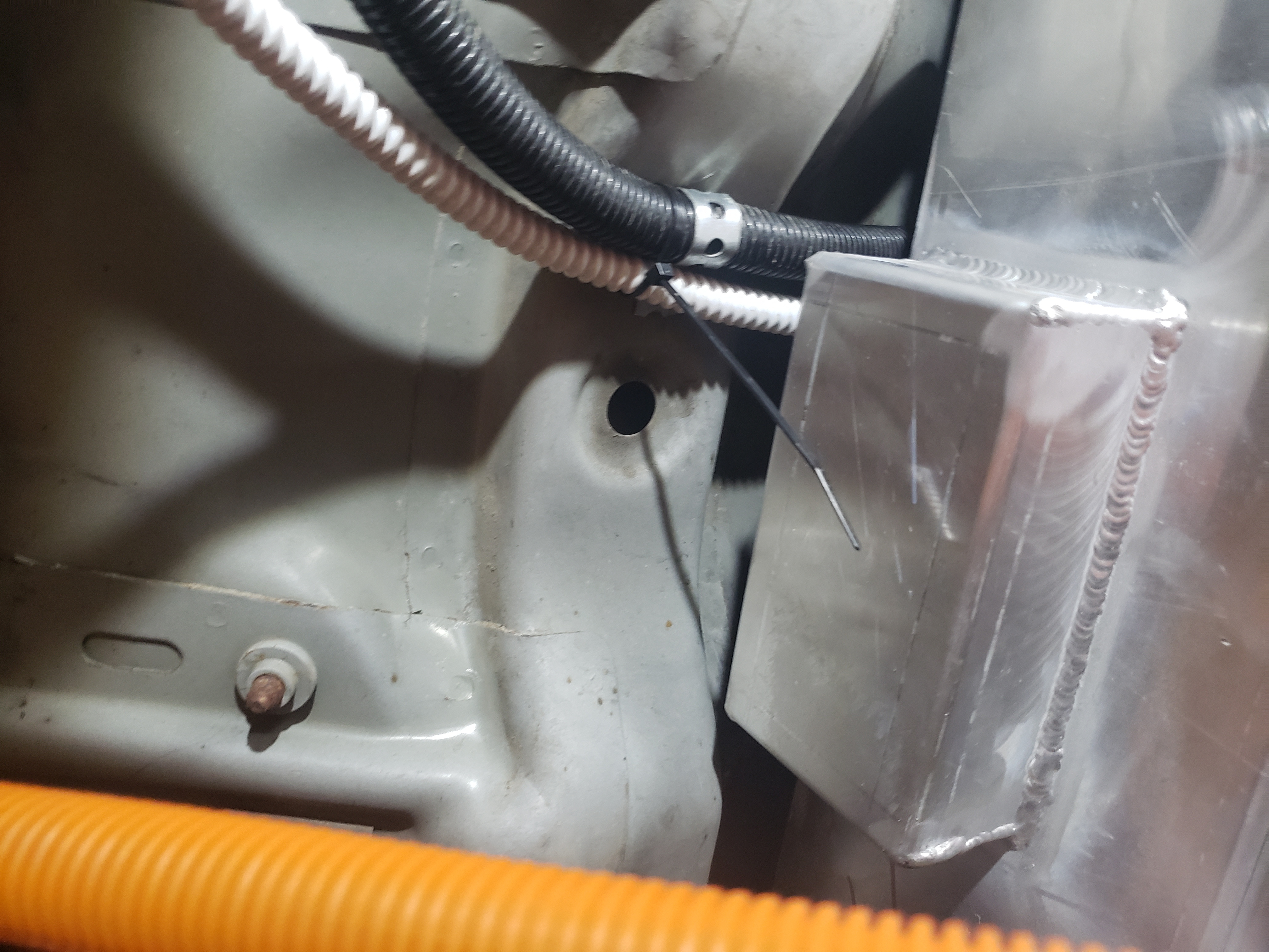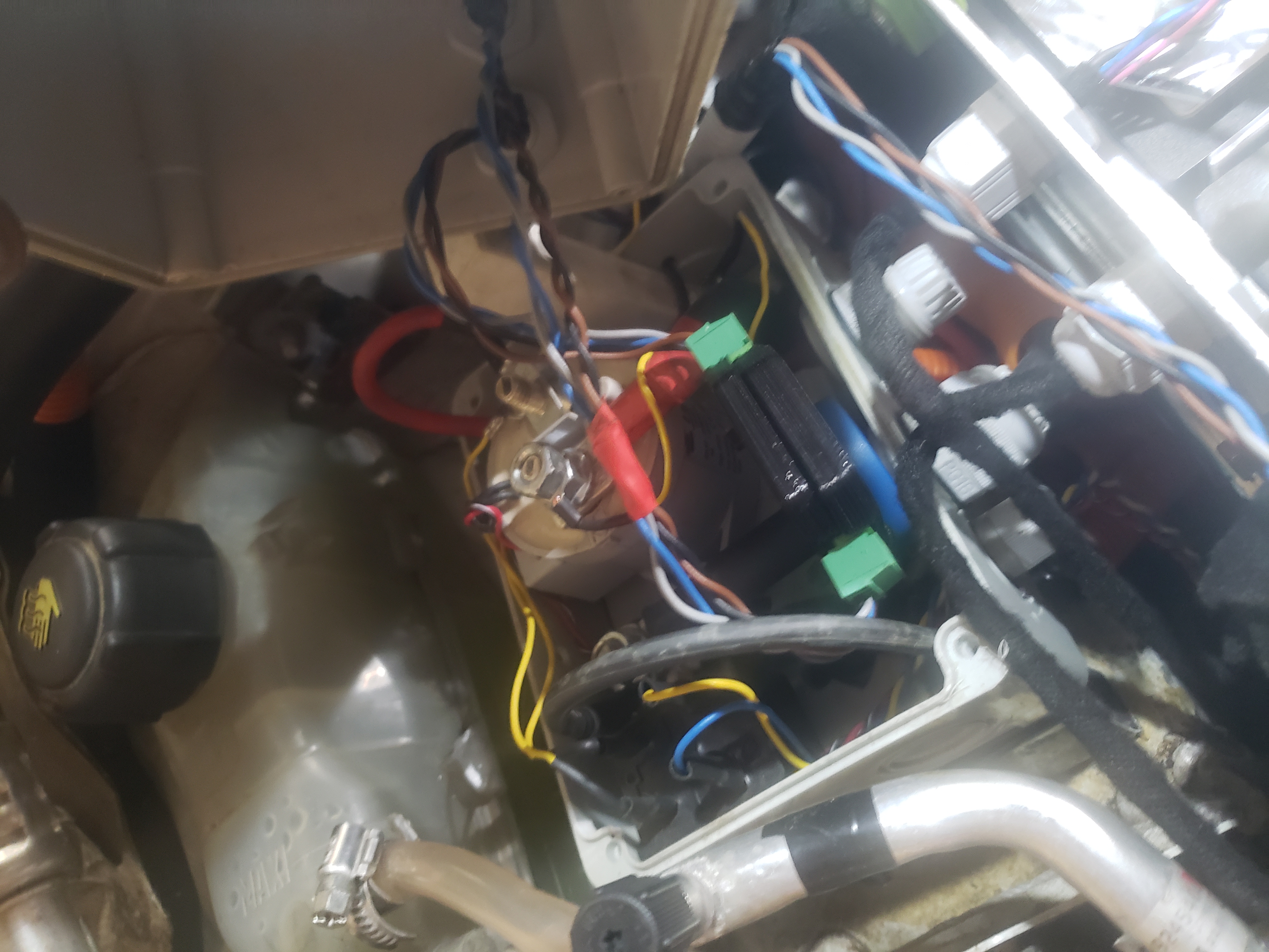 Fourth... i installed Outlander Chademo port at front. I managed to squeeze the connector under hood and relayed cables along the firewall down into the middle tunnel. Later i will connect this somewhere...