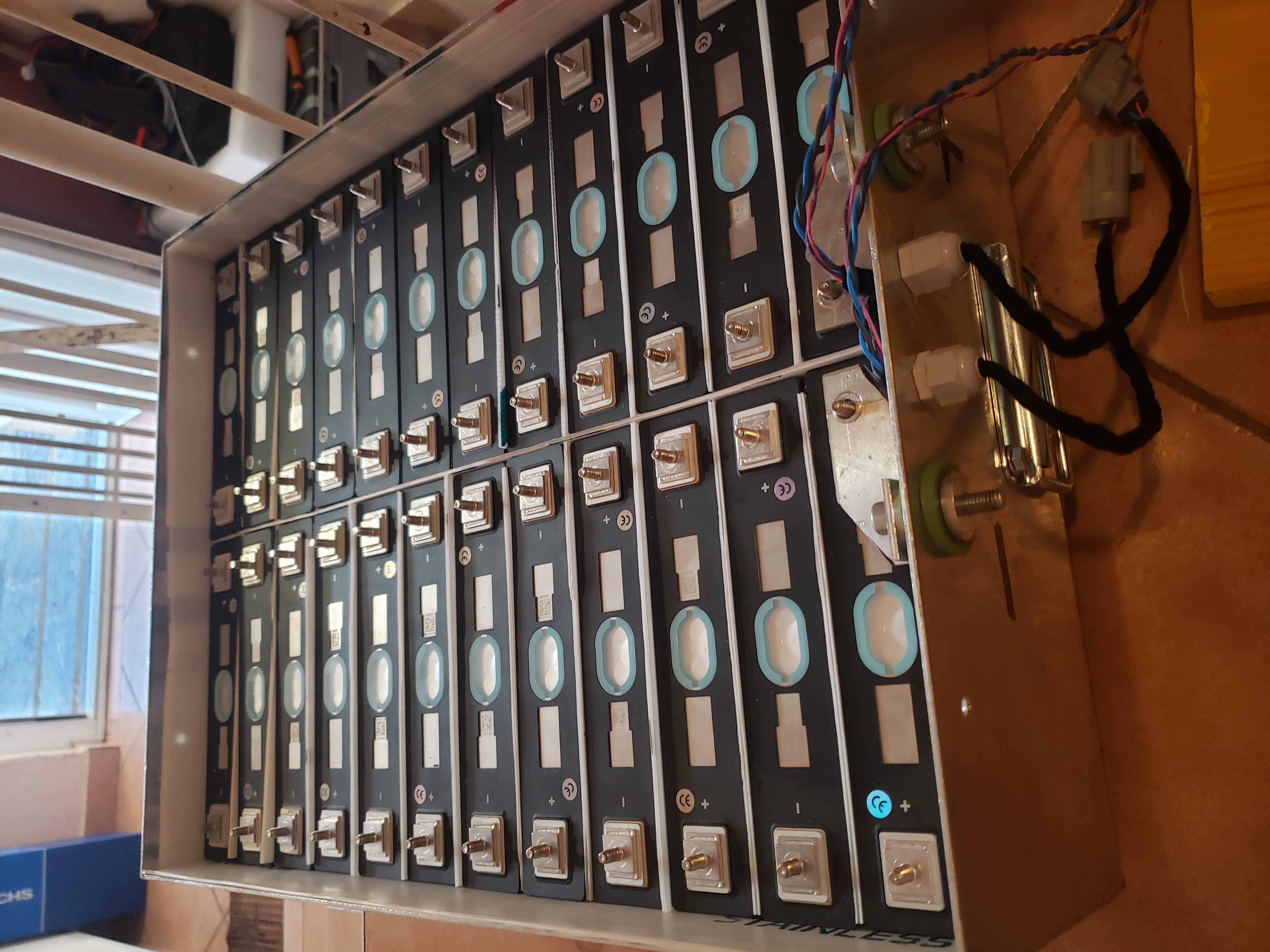All those cells will be secured against overturning by inox U profile bolted at each end of the box. I will strick some isolation material under the profile so its sharp edges wont nick BMS cables.