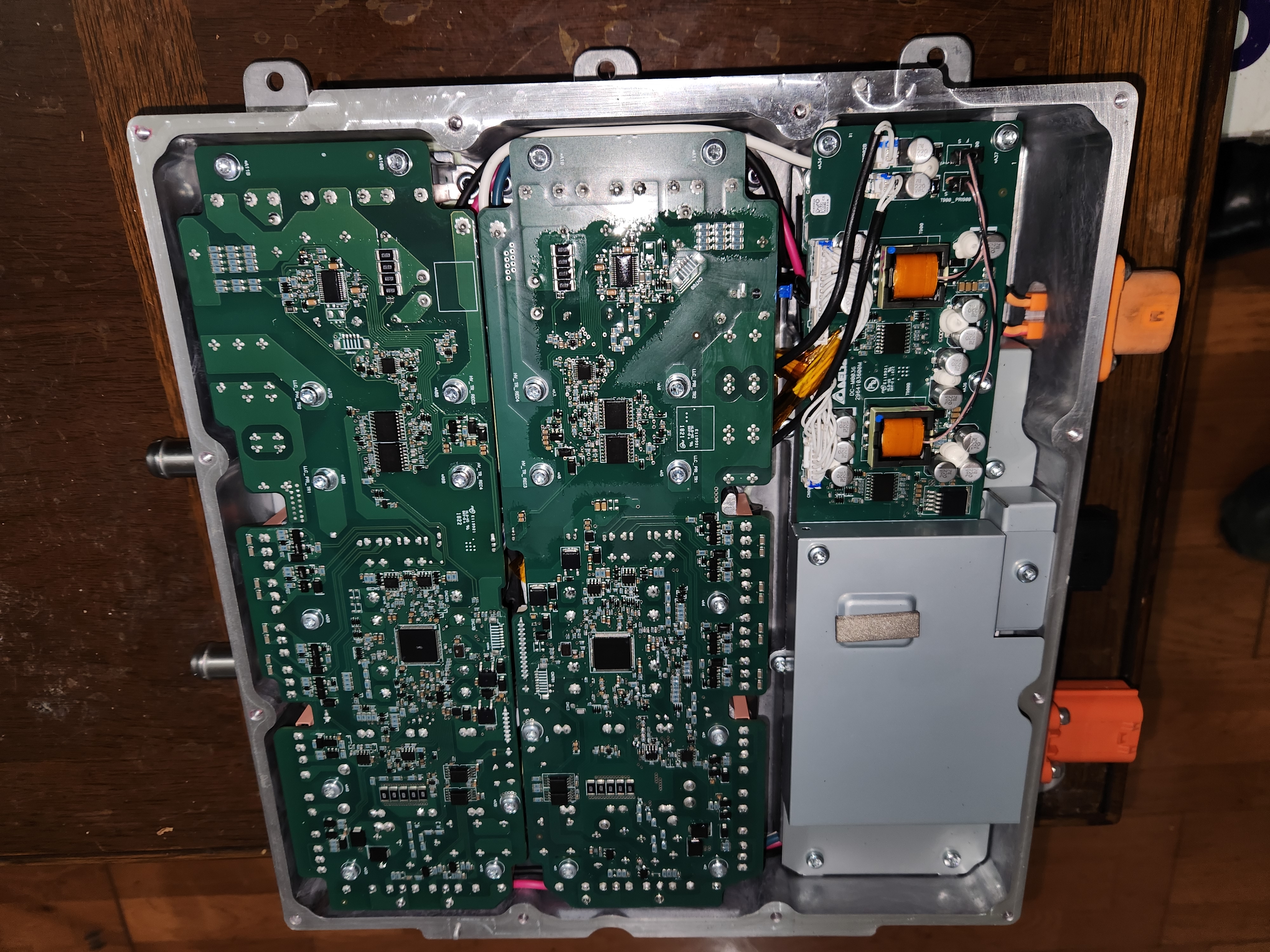 I have begun work on reverse engineering the Chevrolet Bolt onboard charger and DC-DC converter. These are two separate units, and appear to be closely related to and/or the same as those in the second generation Chevrolet Volt, though the charger is higher power.