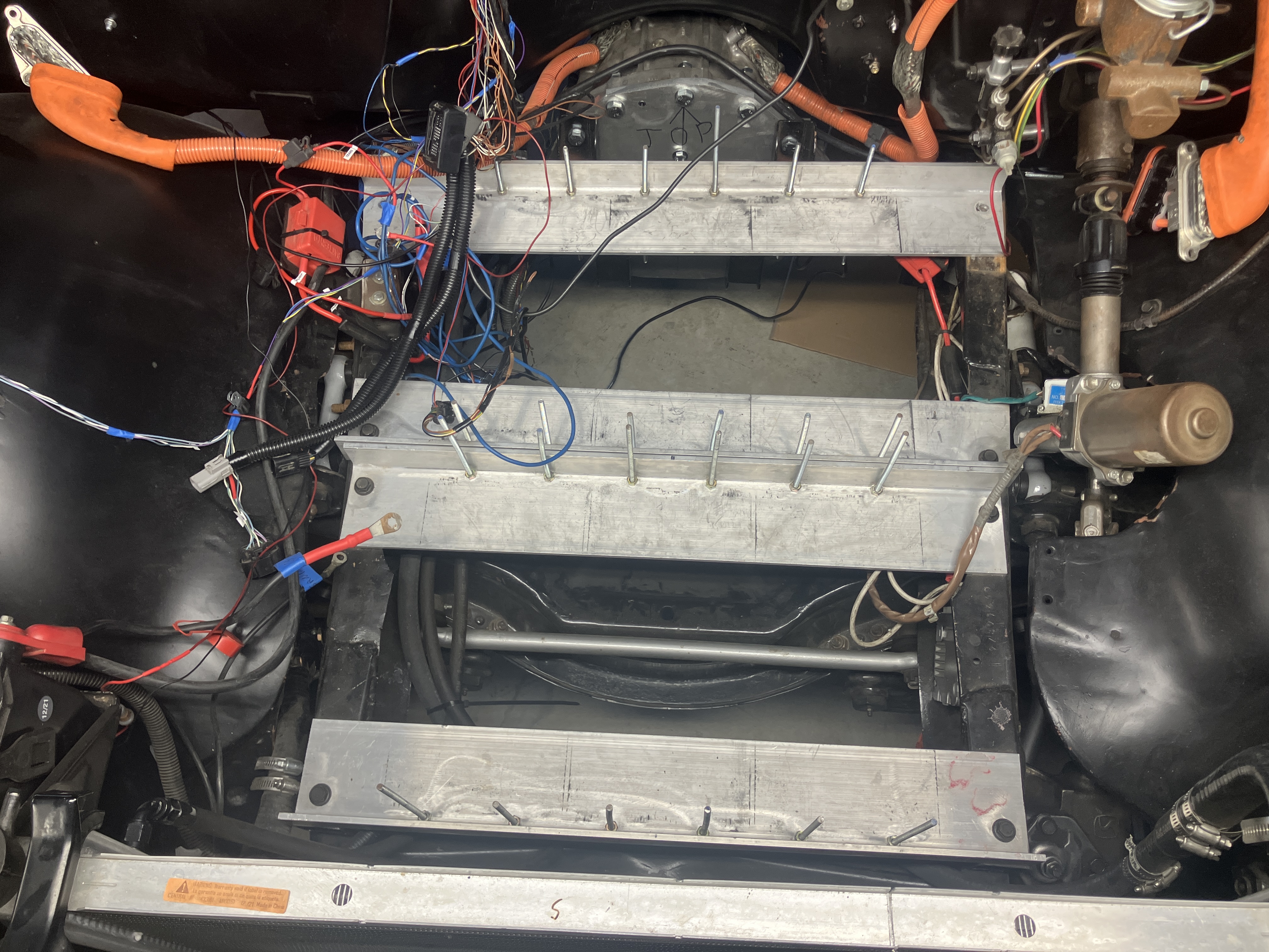 so it all started with me wanting to relocate the water pump which then led me to this, replacing the radiator, and I did this for a couple reasons, first I got tired or using many reducer hoses to step down from like 1 1/2 inches down to 3/4 for the Tesla water pump and even further down to 5/8ths for the inverter, and transmission