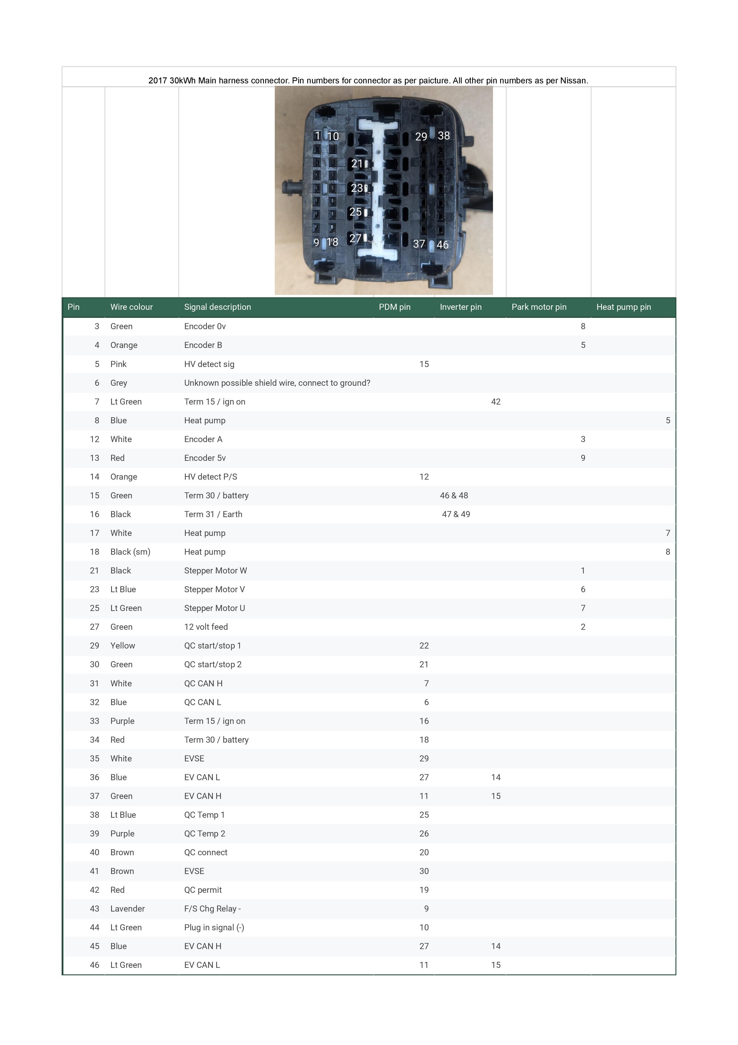 Re: 2017 30kWh main harness connector pin diagram