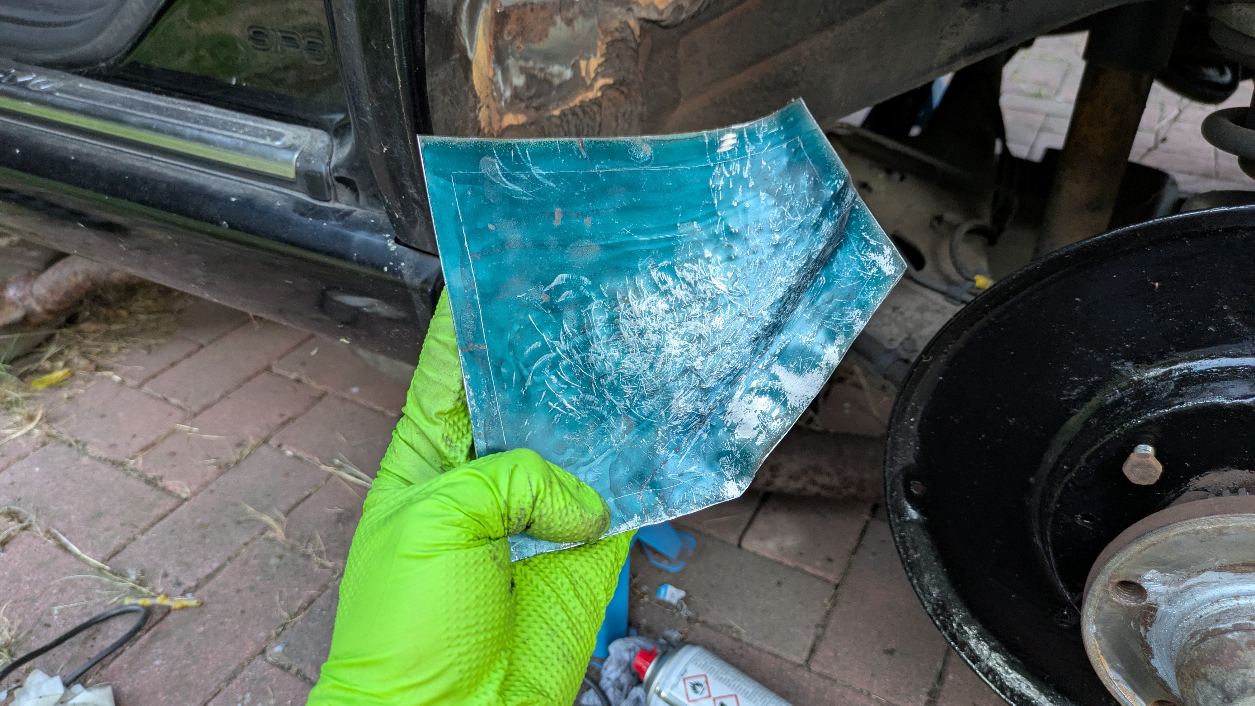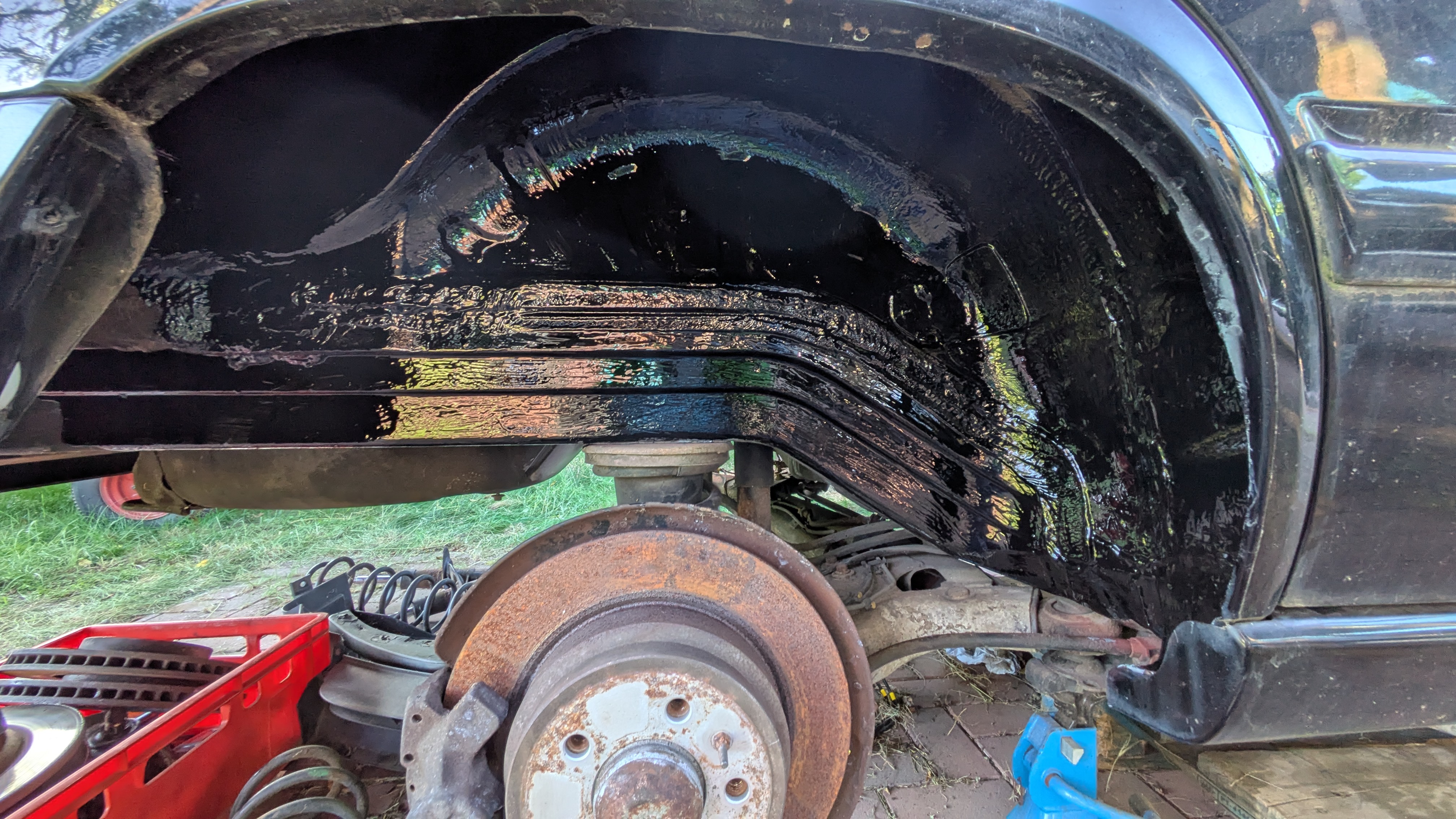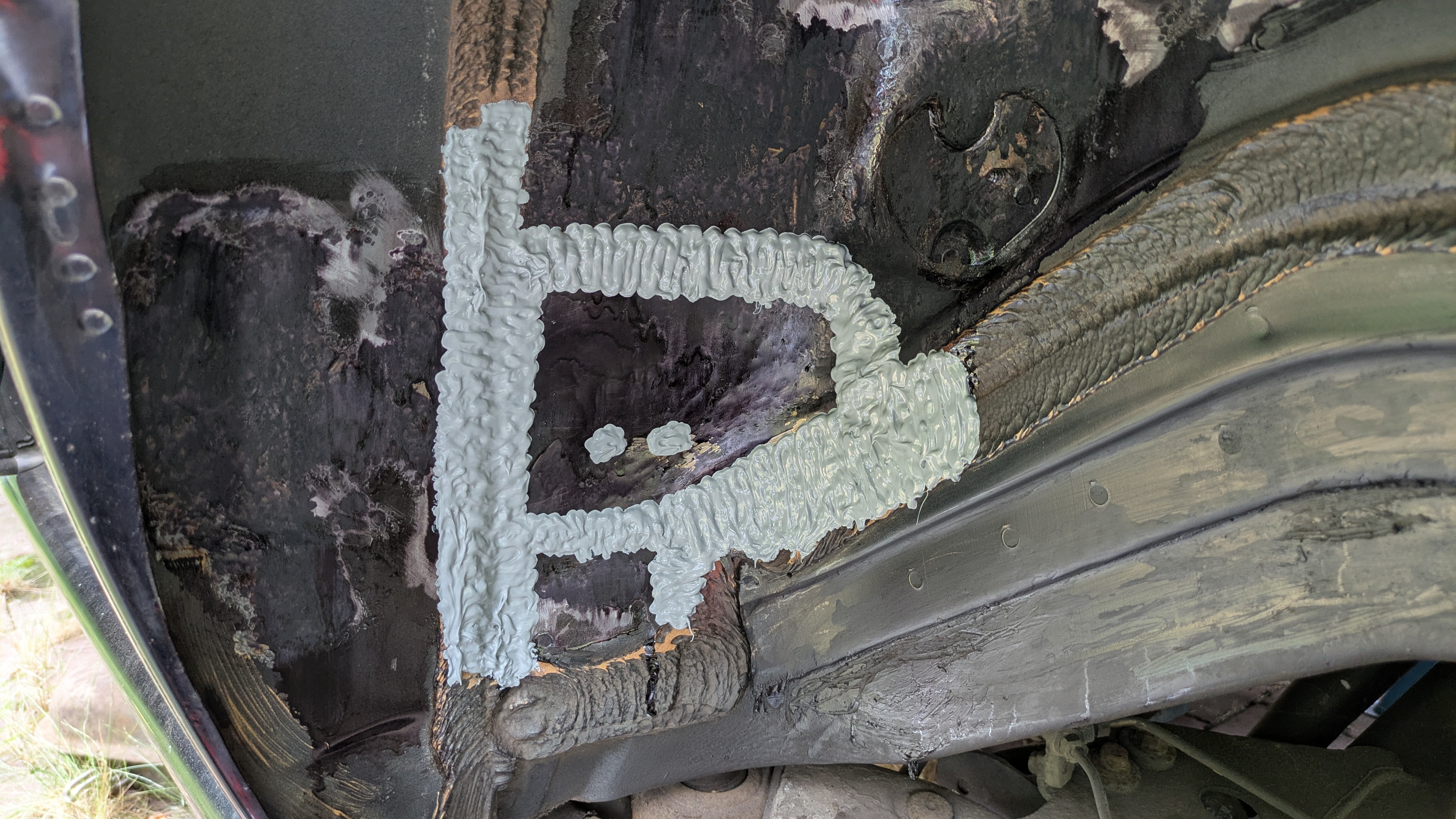 The welds got covered with seam sealer and the rest of the wheel well was cleaned and painted with Brantho Korrux 3in1. The seam sealer will be painted tomorrow when it is (at least mostly) cured.