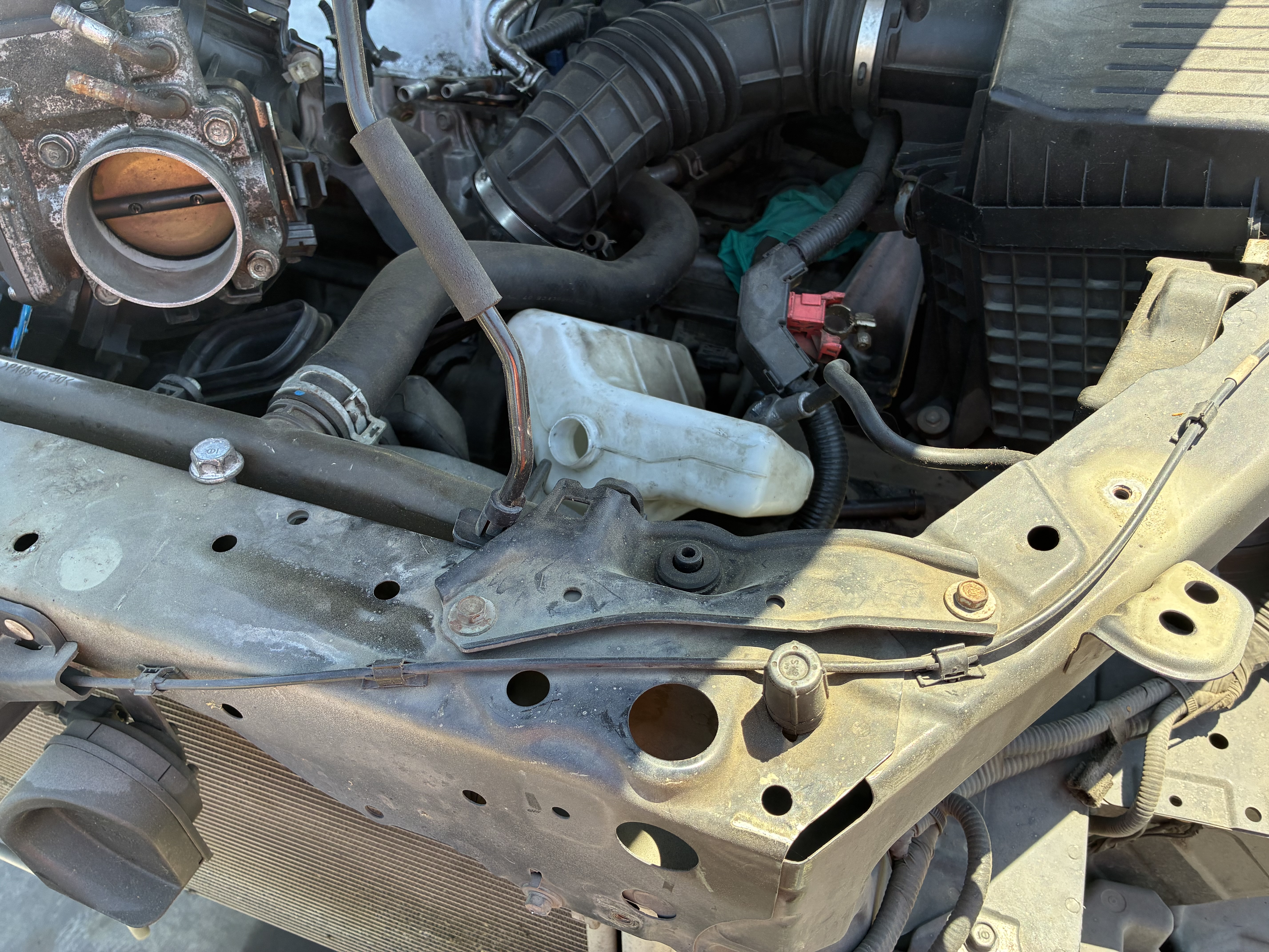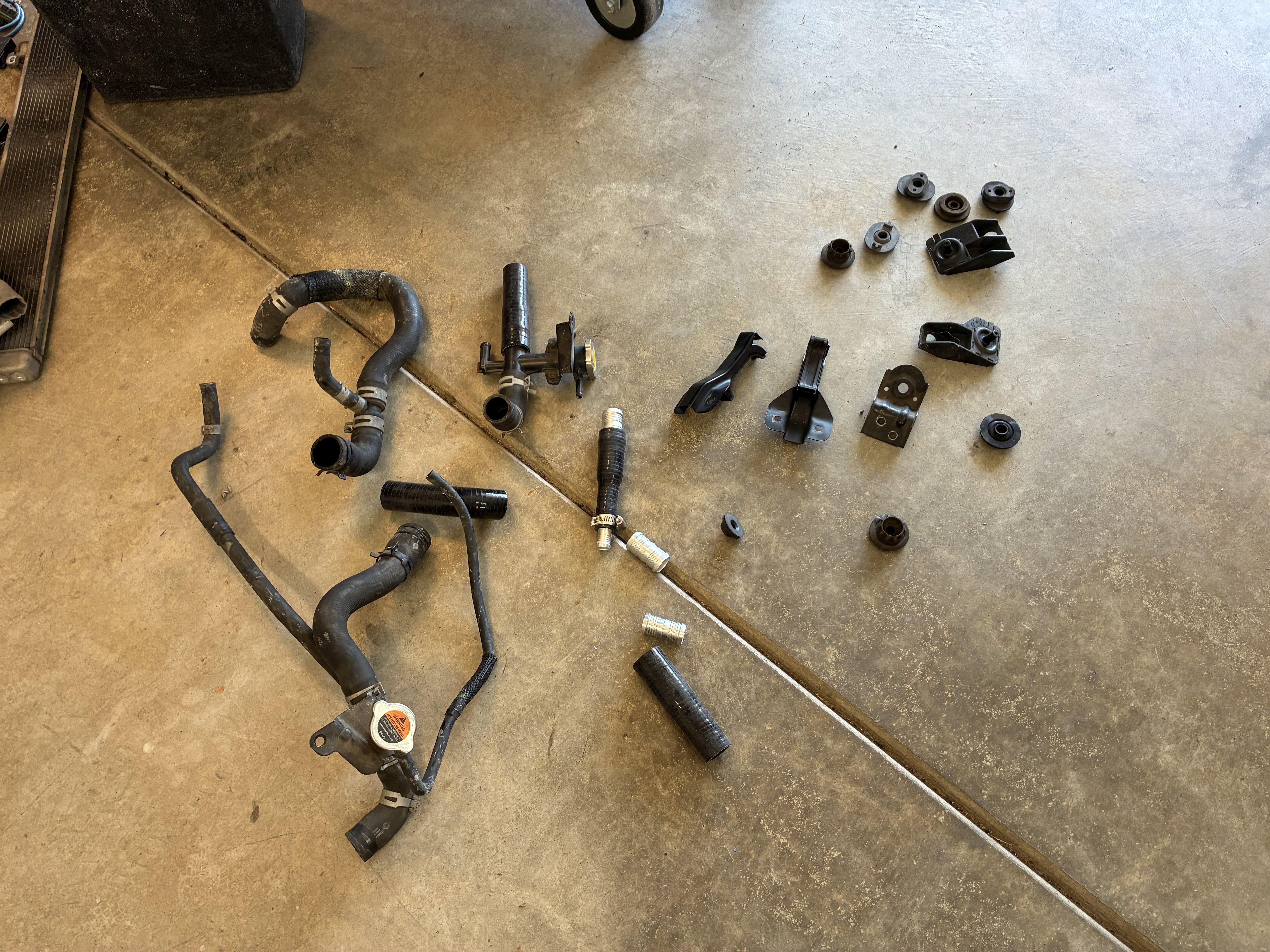 spent the last couple weeks [pronounced: "months"] bangin' my head against a brick wall trying to figure out how to mount that Nissan Versa radiator in the truck with the least amount of fabin' and fandangling, came up with all sorts of excuses not to work on the truck in the process, and amassed a potpourri of random and not so random OEM radiator brackets in the process