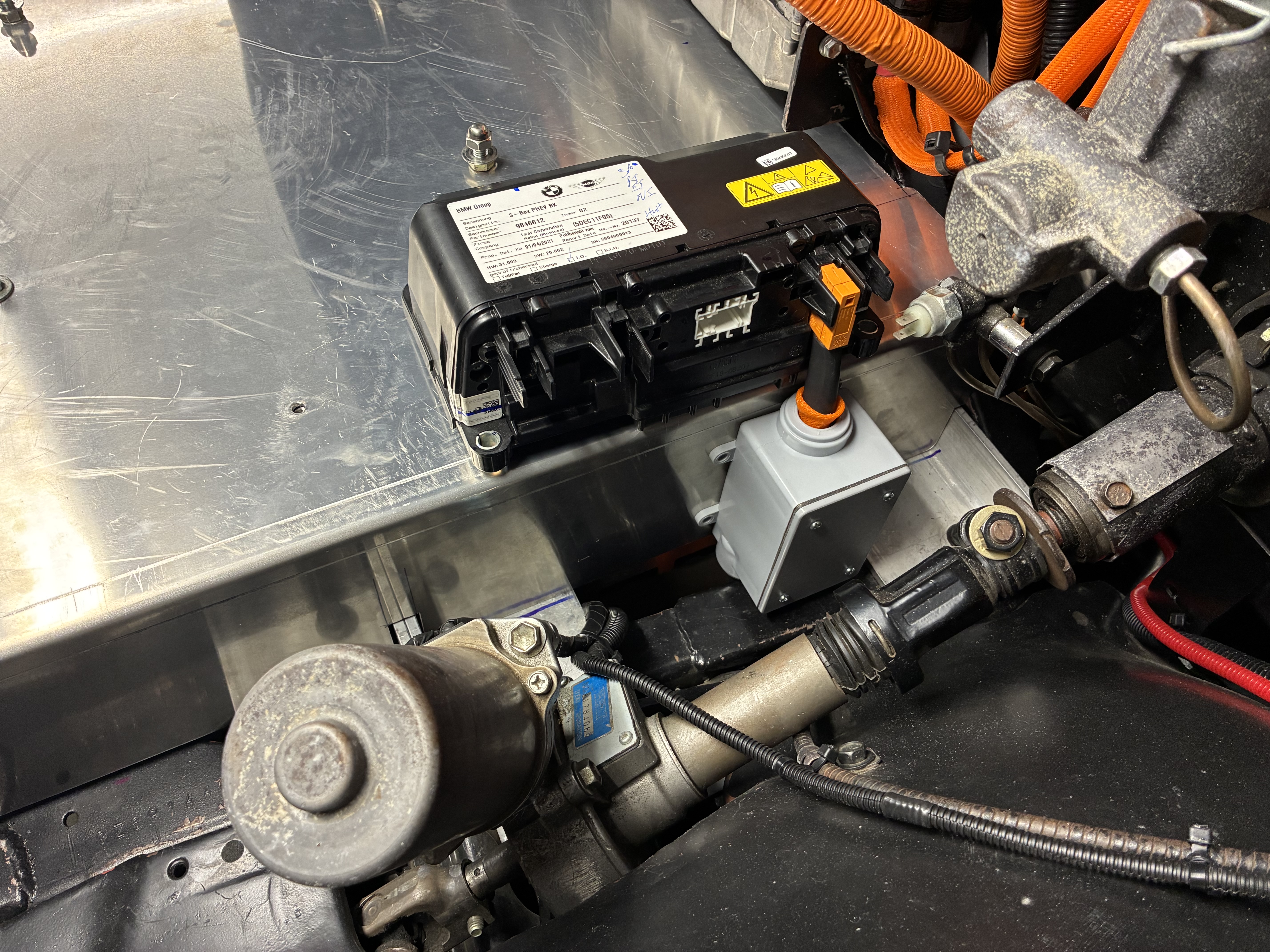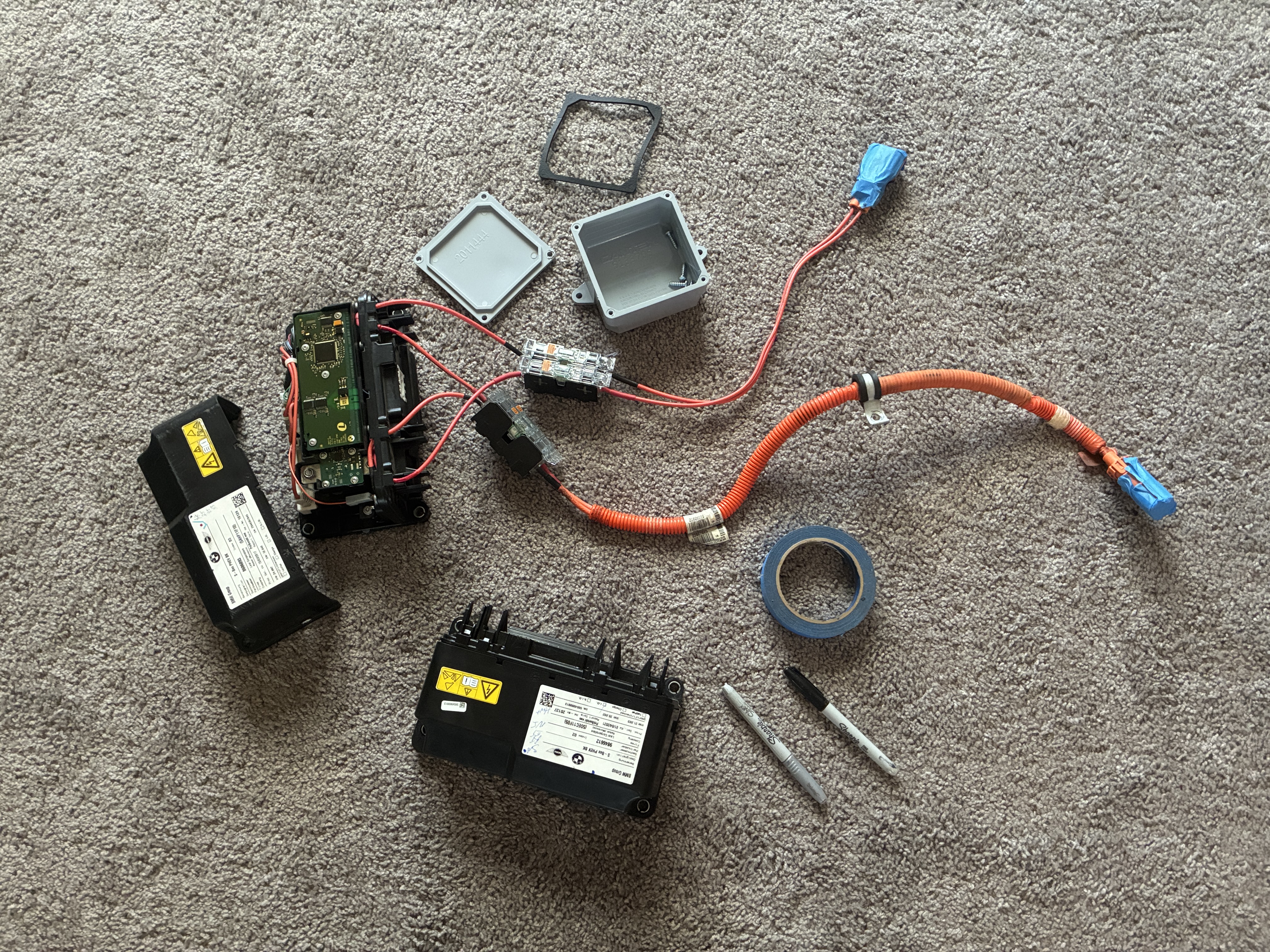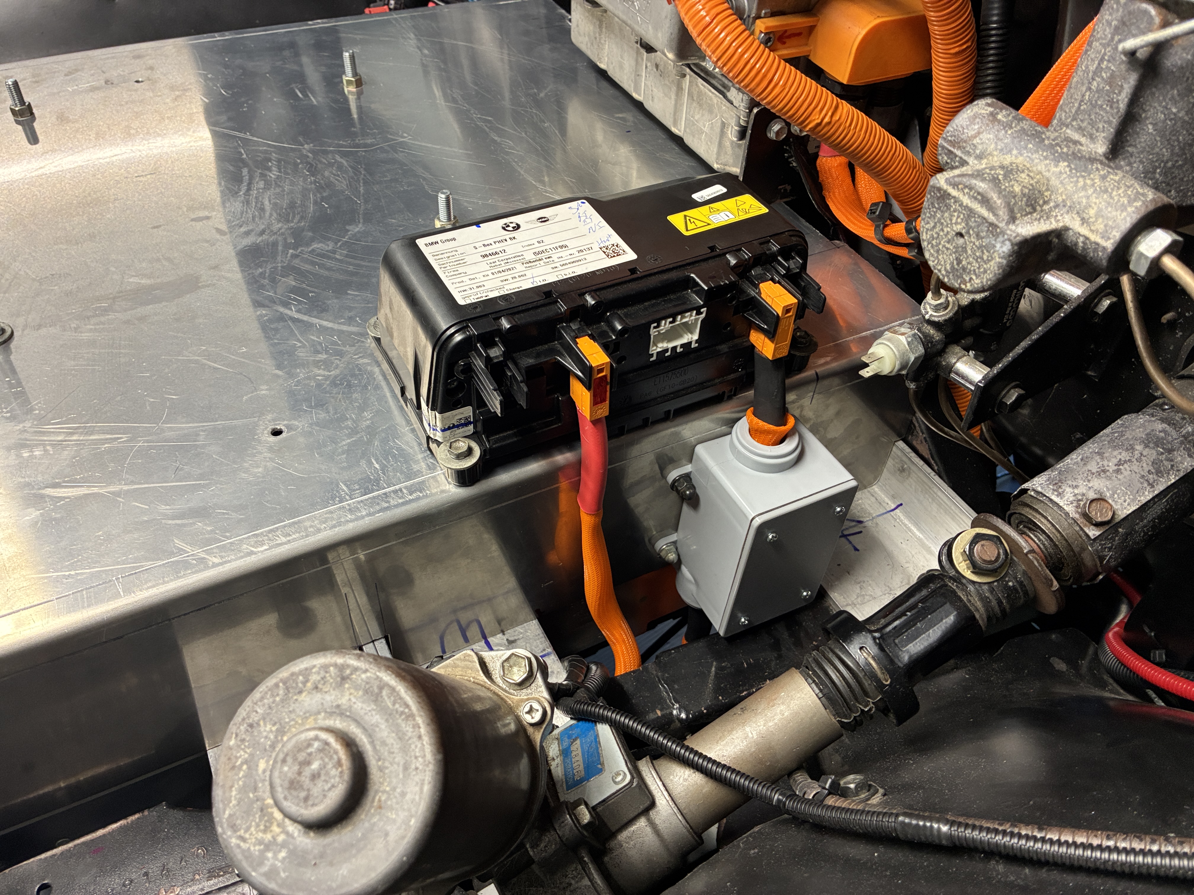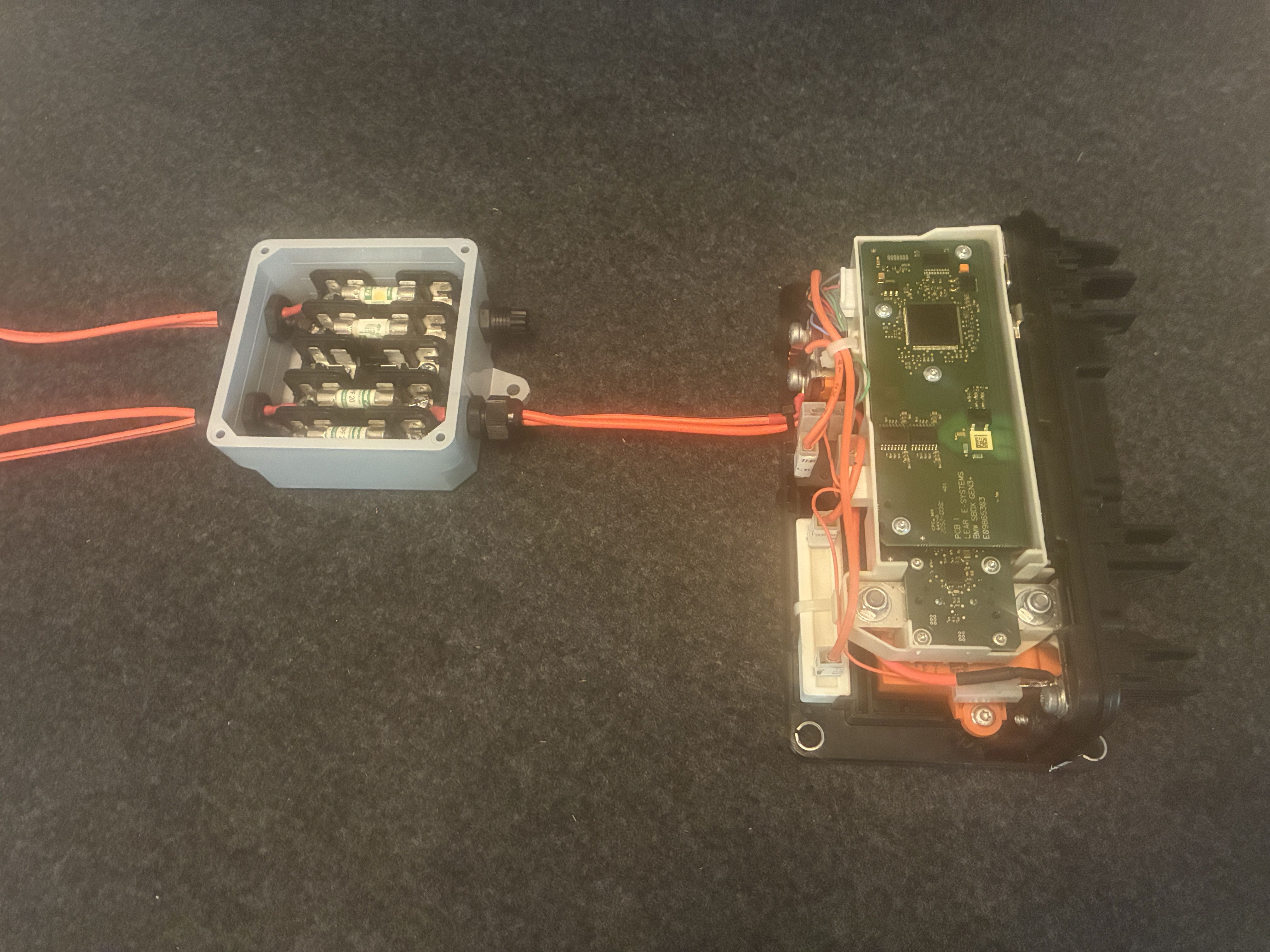 anywho, I managed to chimichanga the high voltage connection via a Cantex junction box to the BMW sBox, this box joins the two negative leads from the two BMW 530e packs into one, simple is the name of the game