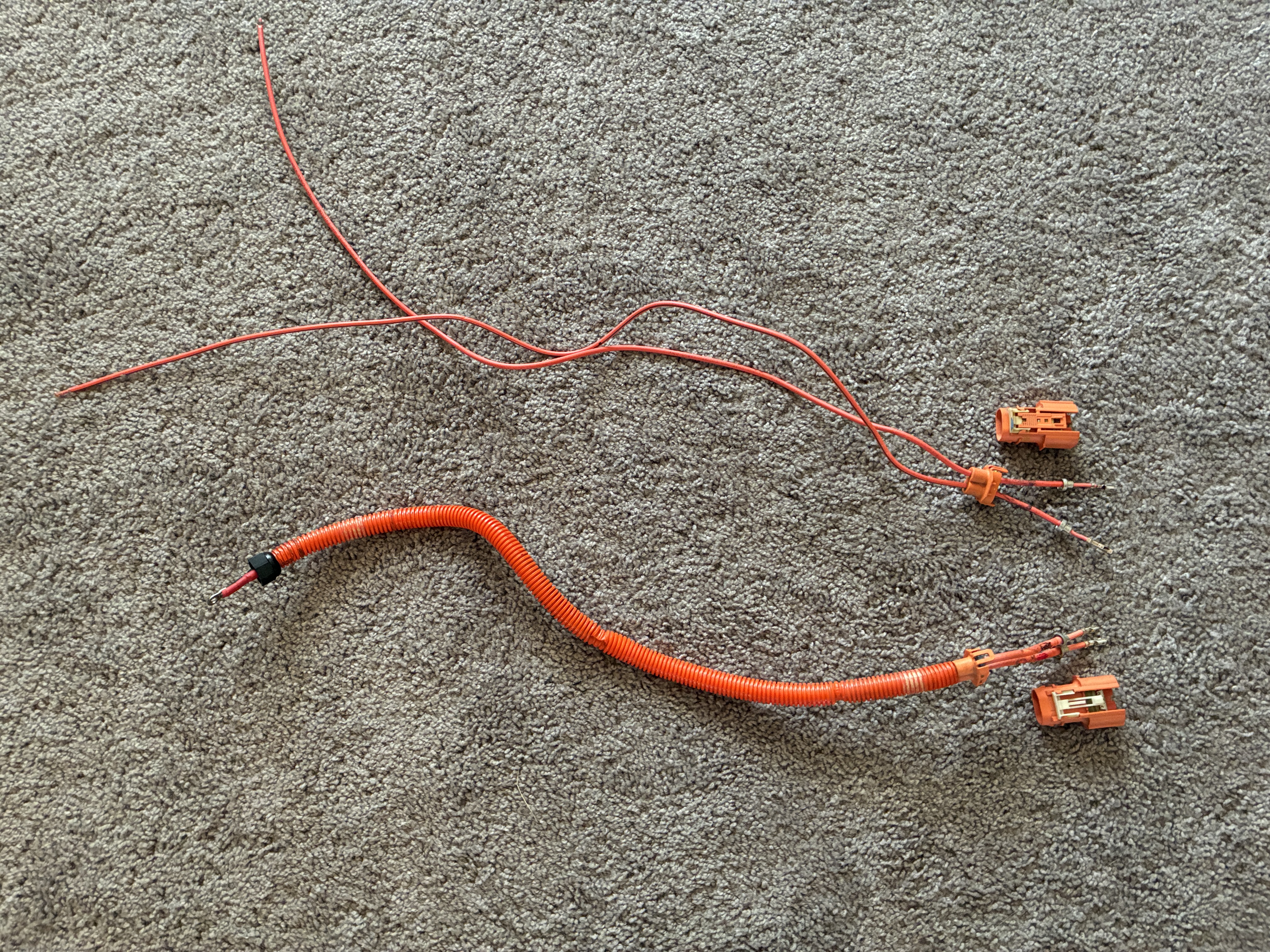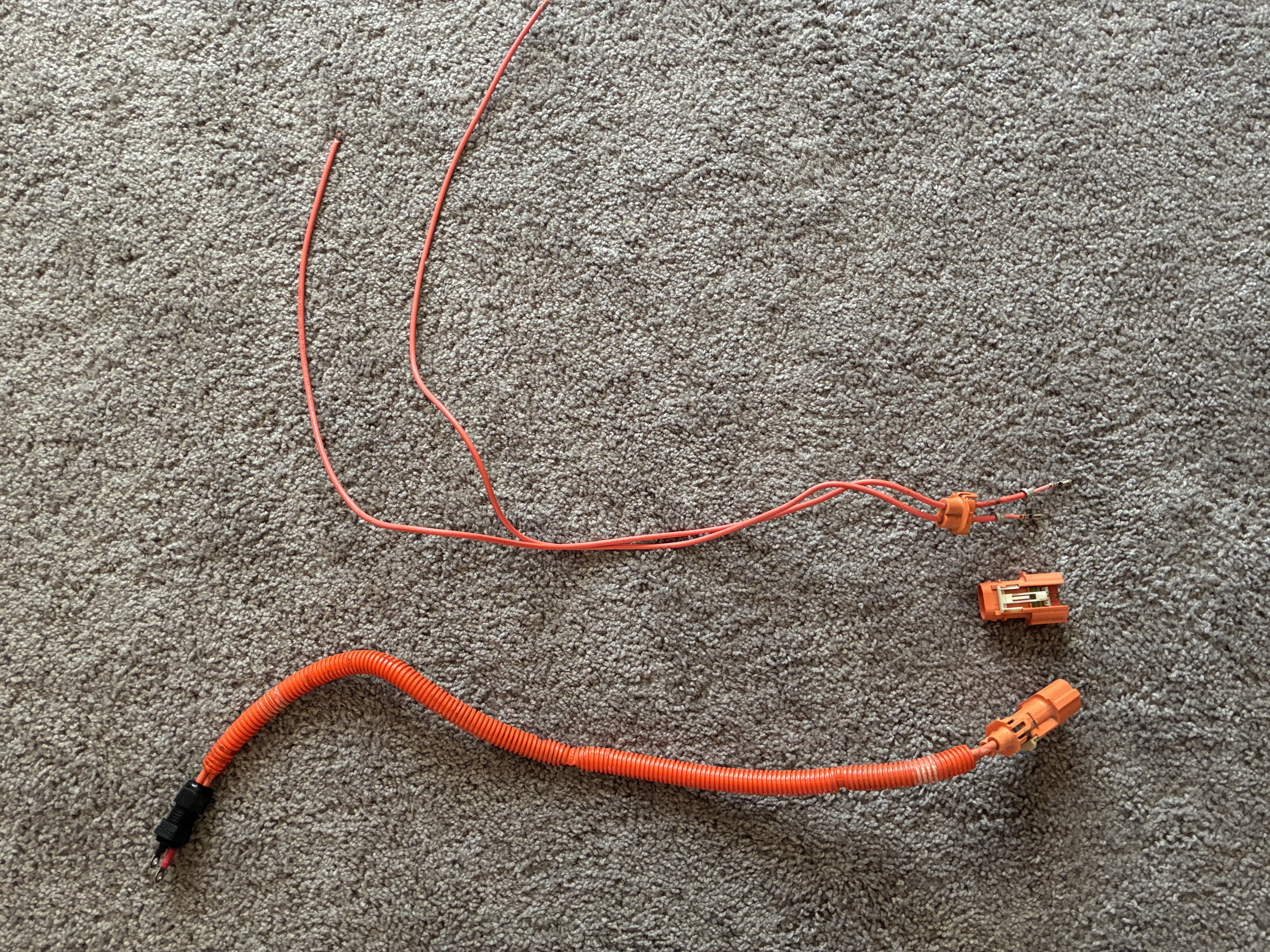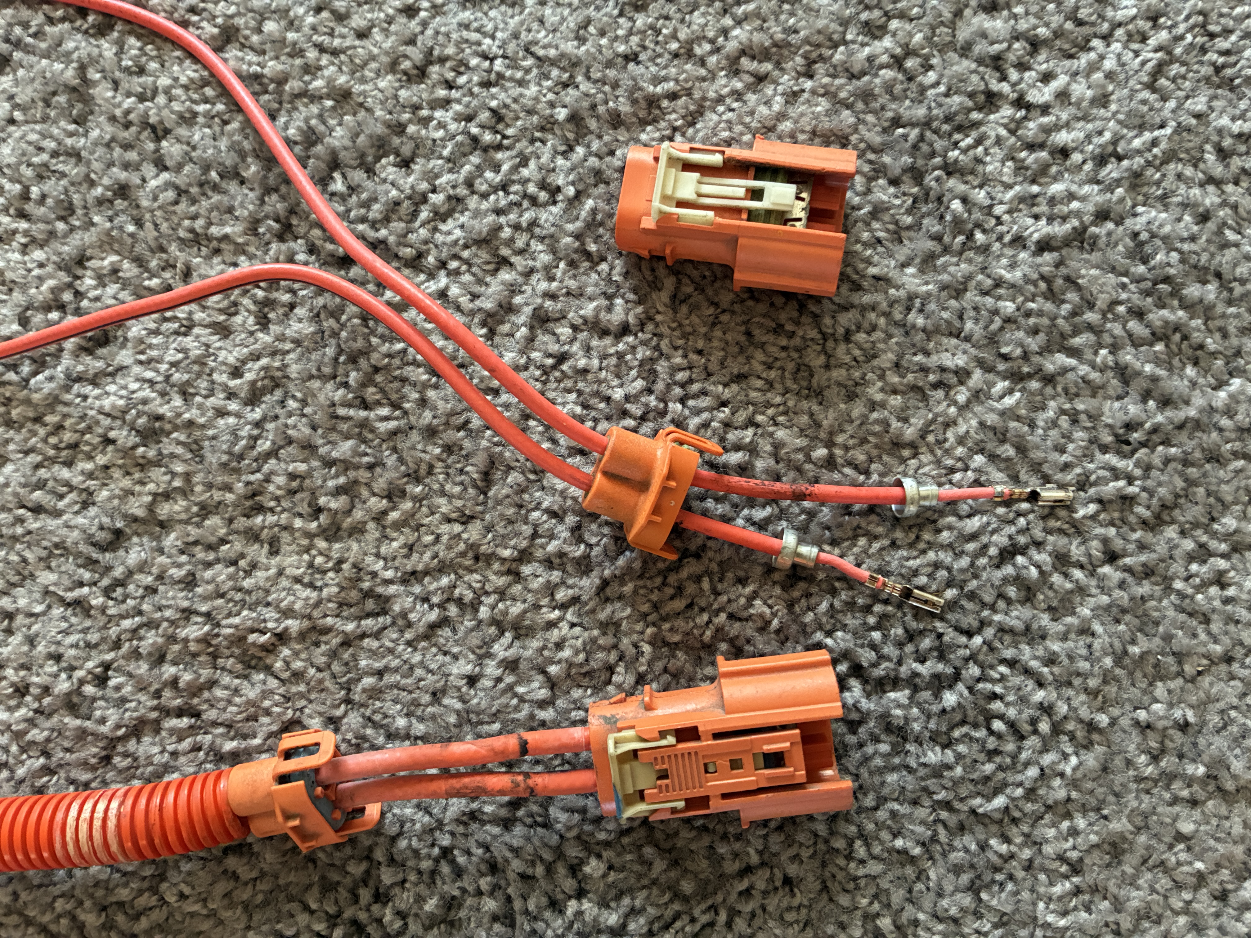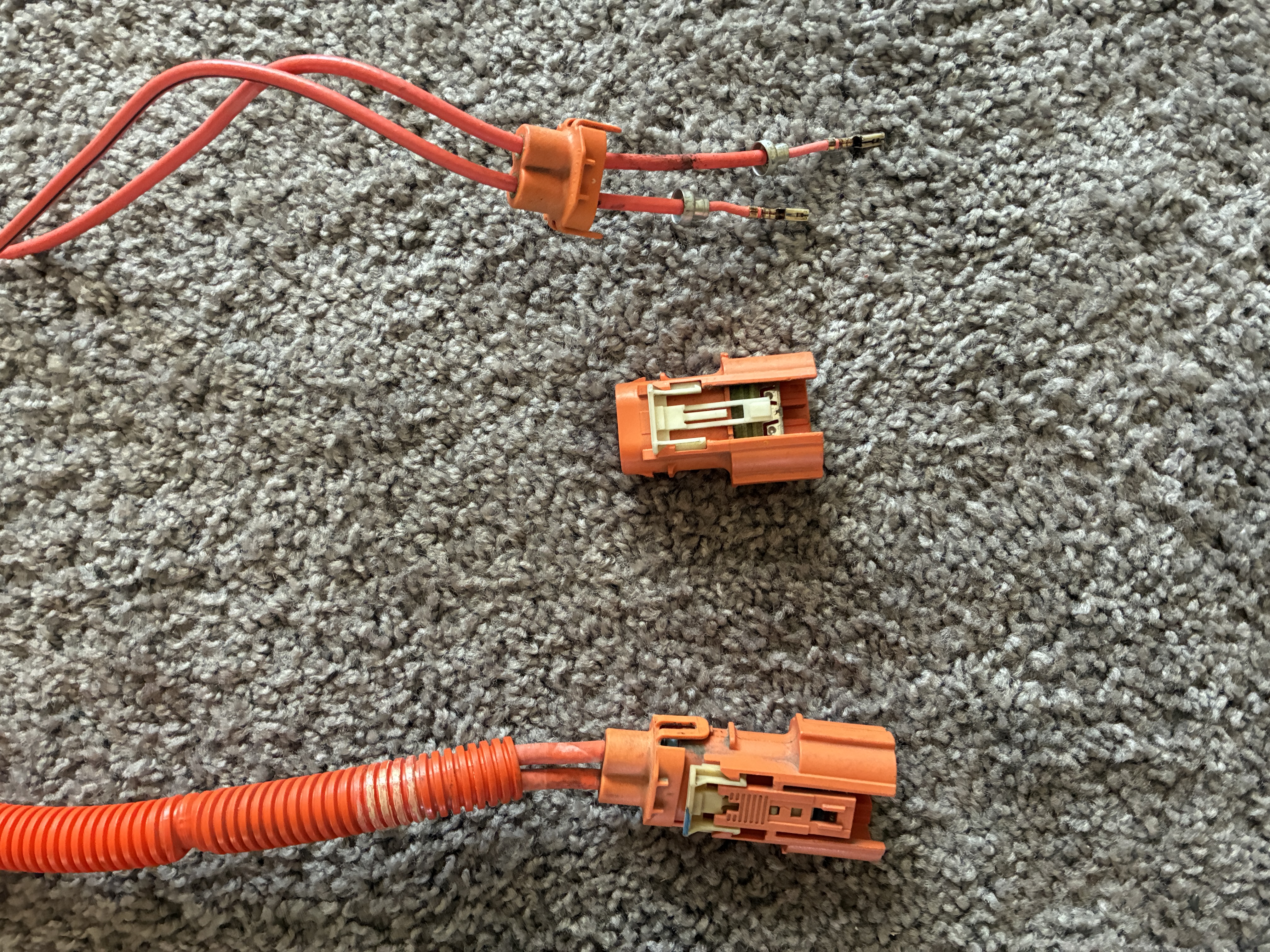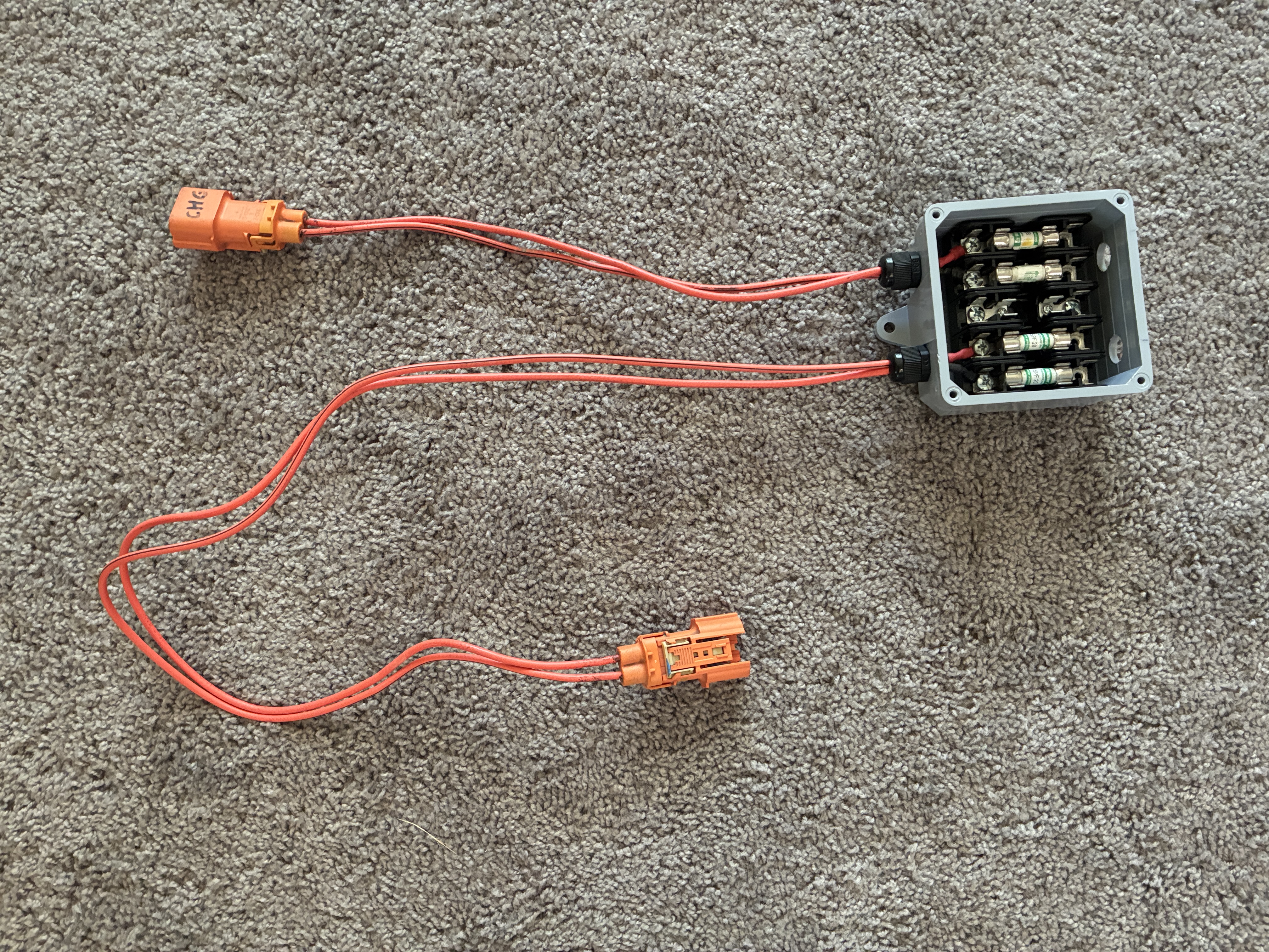 so of course the 1st Gen Chevy Volt DC-DC cable was now 5" too short so the Harness Man had to do a little cable swap-a-roo with a spare charger cord to extend them, I hate to brag but 5" makes all the difference