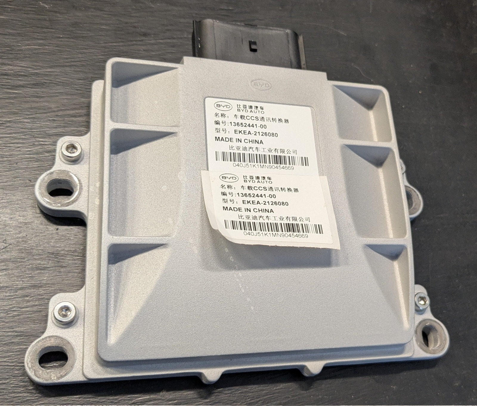External label is mostly in Chinese (“车载CCS通讯转换器” is "Vehicle mounted CCS communication converter device"). There's also a serial number and a model number EKEA-2126080.