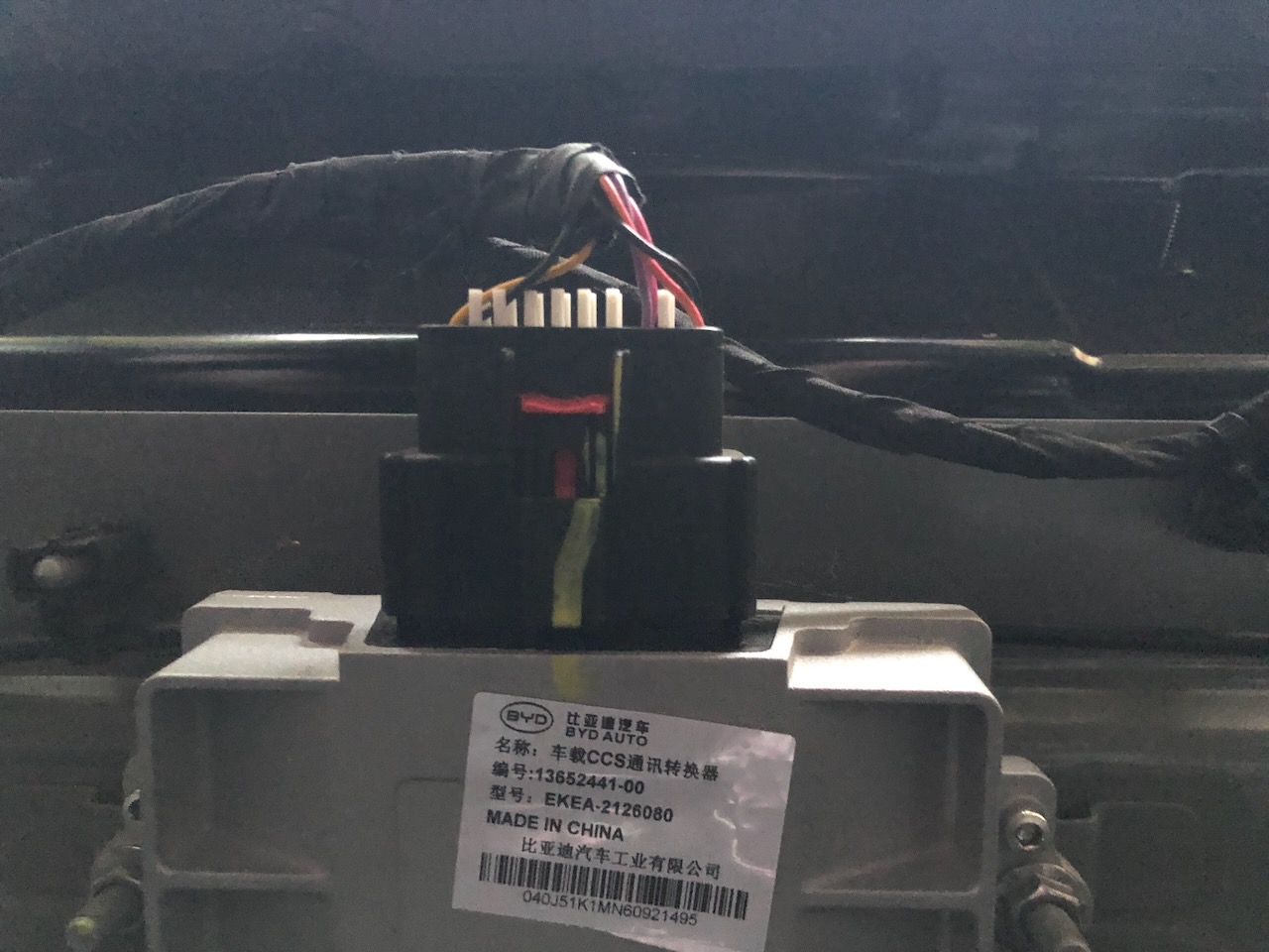 This module only has six pins connected in the Atto 3: 12V power, two grounds, CAN H/L and the charge port CP connection. It's on a dedicated "Charging sub-network" CAN bus with only two CAN nodes: this CCS module, and a port on the Integrated Intelligent Controller (basically VCU+OBC super-unit, inside the motor stack).