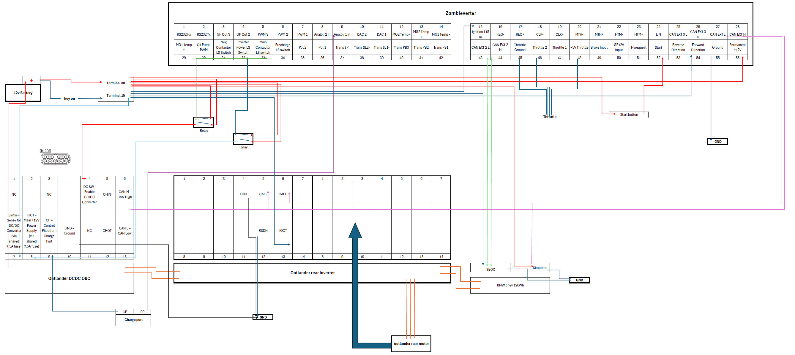 I have drawn a draft wiring of zombieverter witn outlander componants, I would appreciate if anyone can confirm specifically the below and maybe overall, any mistakes in my understanding? Some questions maybe dumb to some so please forgive me.