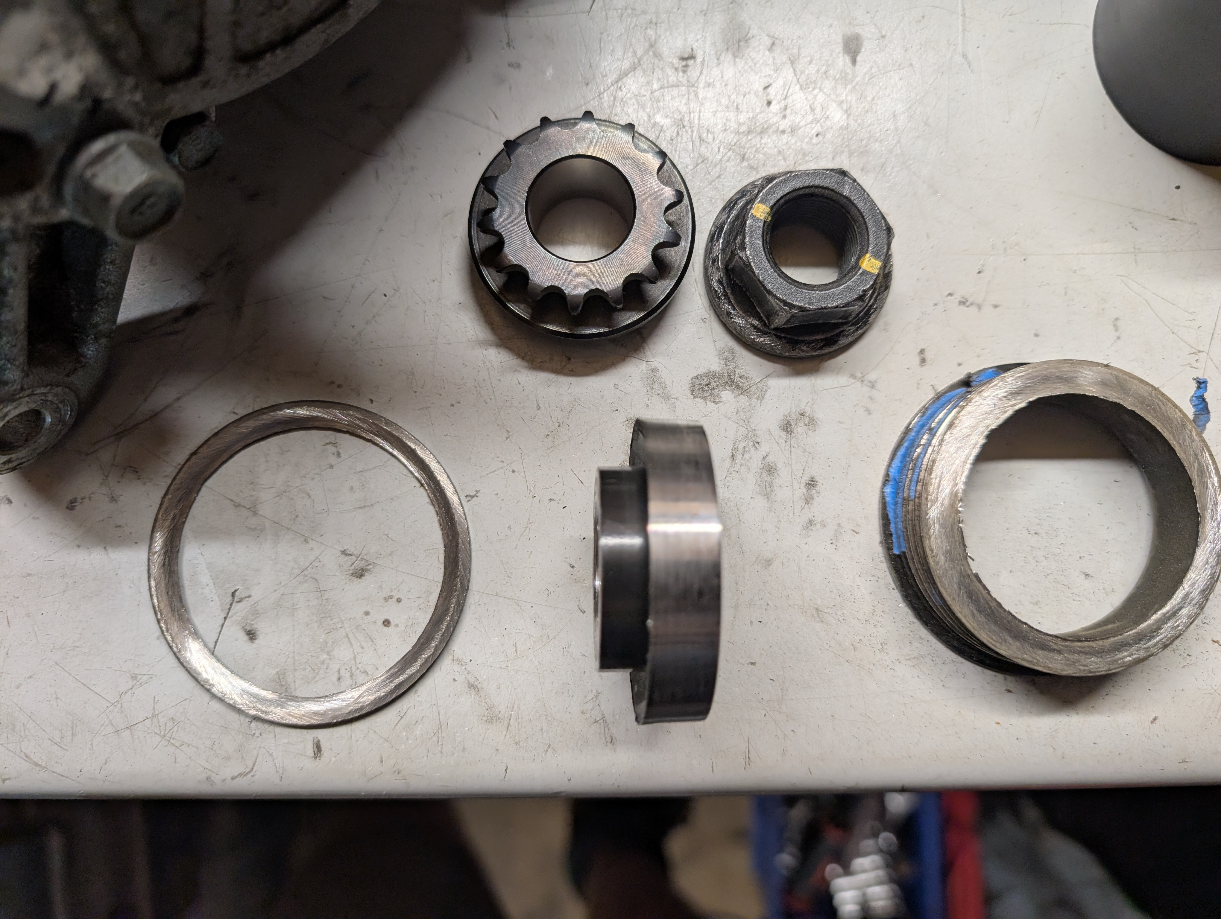 Need to sort driveshaft. it seems a bearing failed and then the shaft started spinning inside the bearing and ate away over a mm of shaft diameter. current plan is weld it up then grind it back concentric. if that doesn't work then new shaft.
