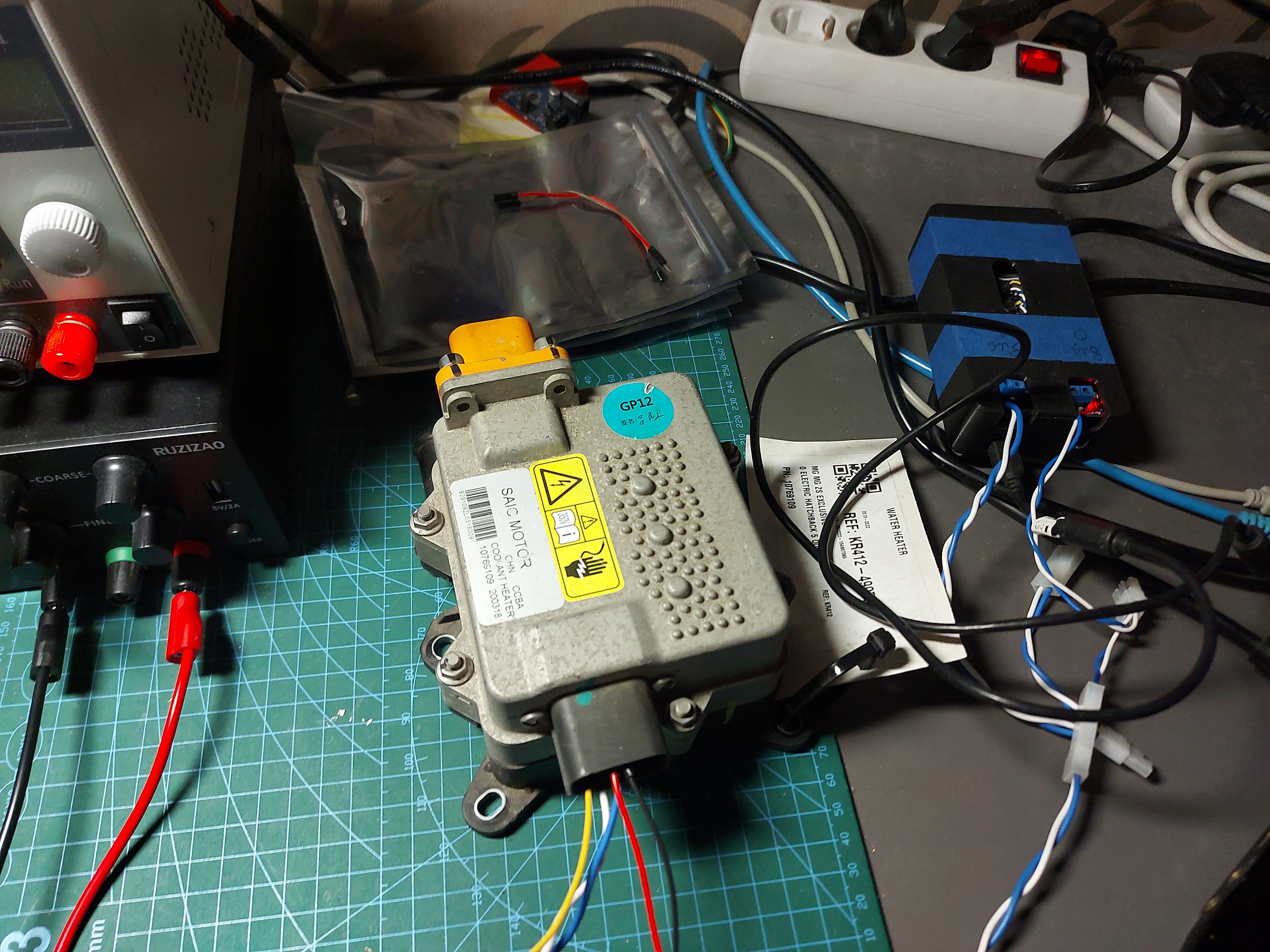 The CAN IDs and message coding is different from MG, but I figured out some basics already. My bench power supply is only capable of 1A@300VDC, so when I send (what I think is) a control message, power supply isn't capable of providing that many amps. Heater tries to fire up and sends some CAN data in response, but then times out on trying. I'll need to find better power source.