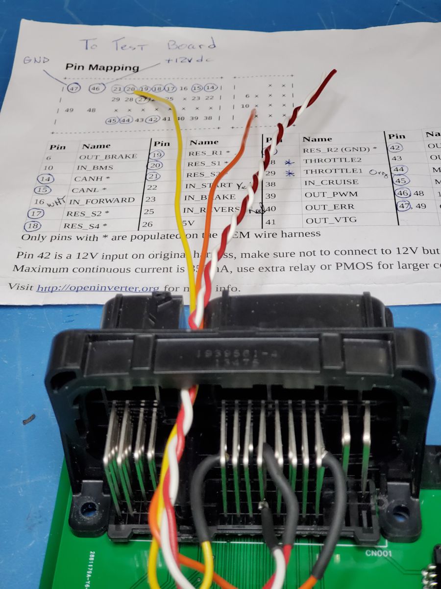 Johannus, I am still working on my MGB Conversion, and to add connections that are not in the Leafs wire harness connector to the Invertor, I have done the following: