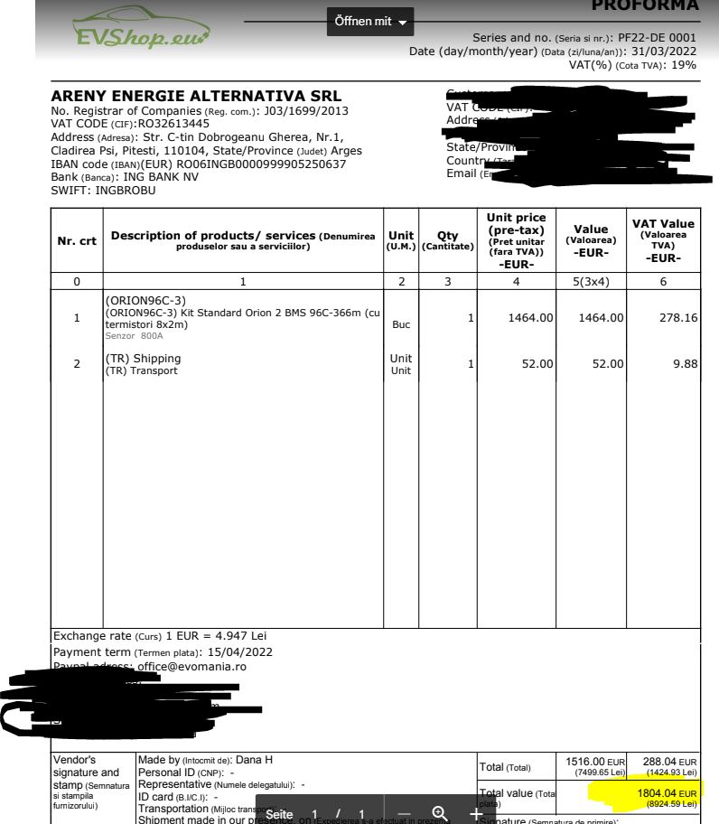 For Sale is my Orion BMS 96 Cells with all Cables in original Packaging. Never opened most of the cable loom packages.