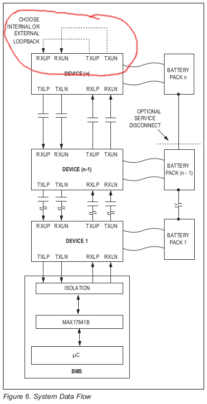 Is my circuit for the MAX17841B chip correct? On page 1 of this tread there was a PDF document linked by you named "BMS.pdf". And your circuit is different than mine. Im using Manny's PCB listed on page 5 of this tread. I did a loop-back as listed in the "CMC devices" document attached to a earlier post of mine, is that way correct? I still haven't got it working.