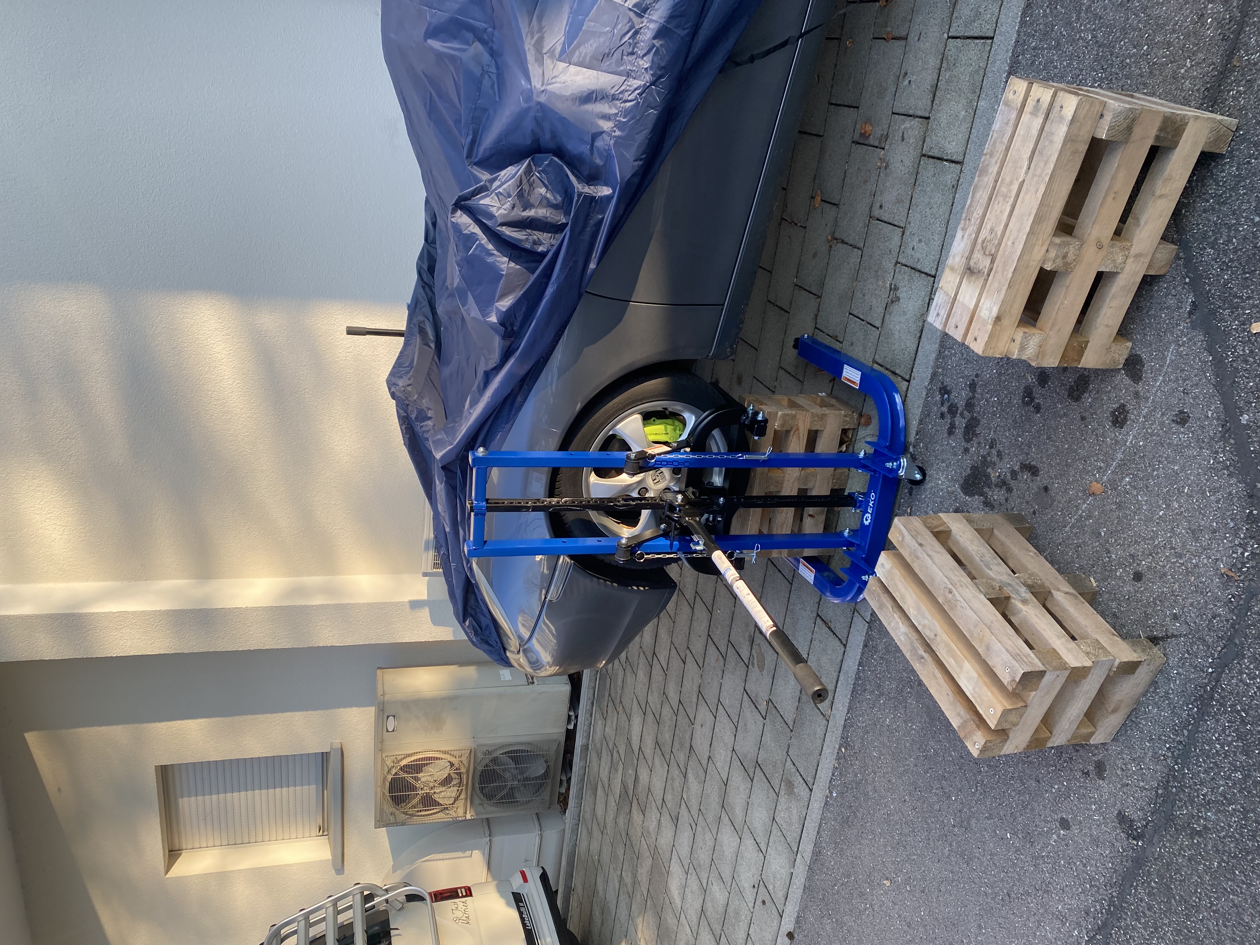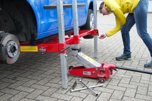 Is my current solution. But to lift it up and down is like three hours. It is quite unsafe. Last time my car jumped from the car jack. Fortunatly with minor damage.