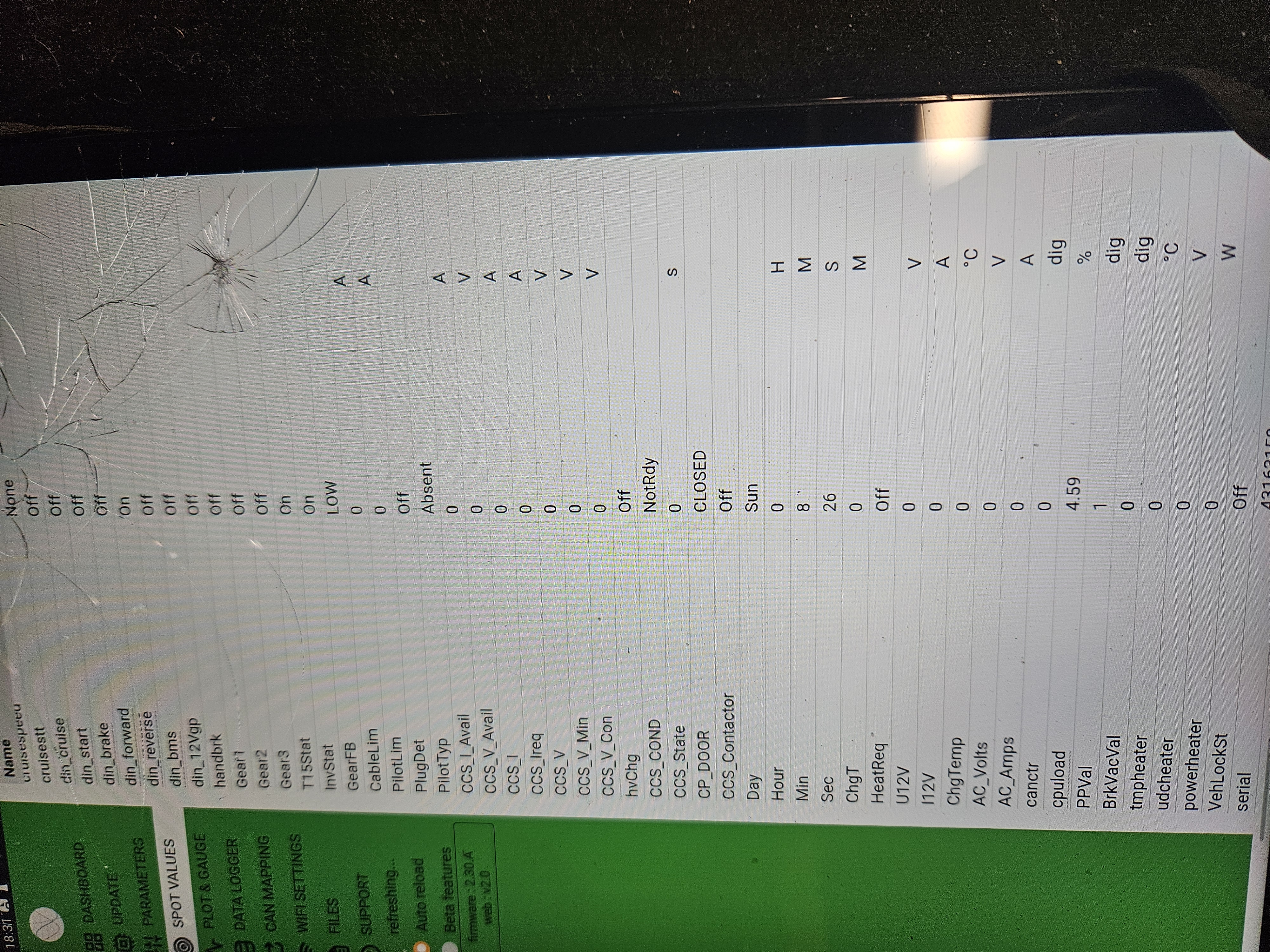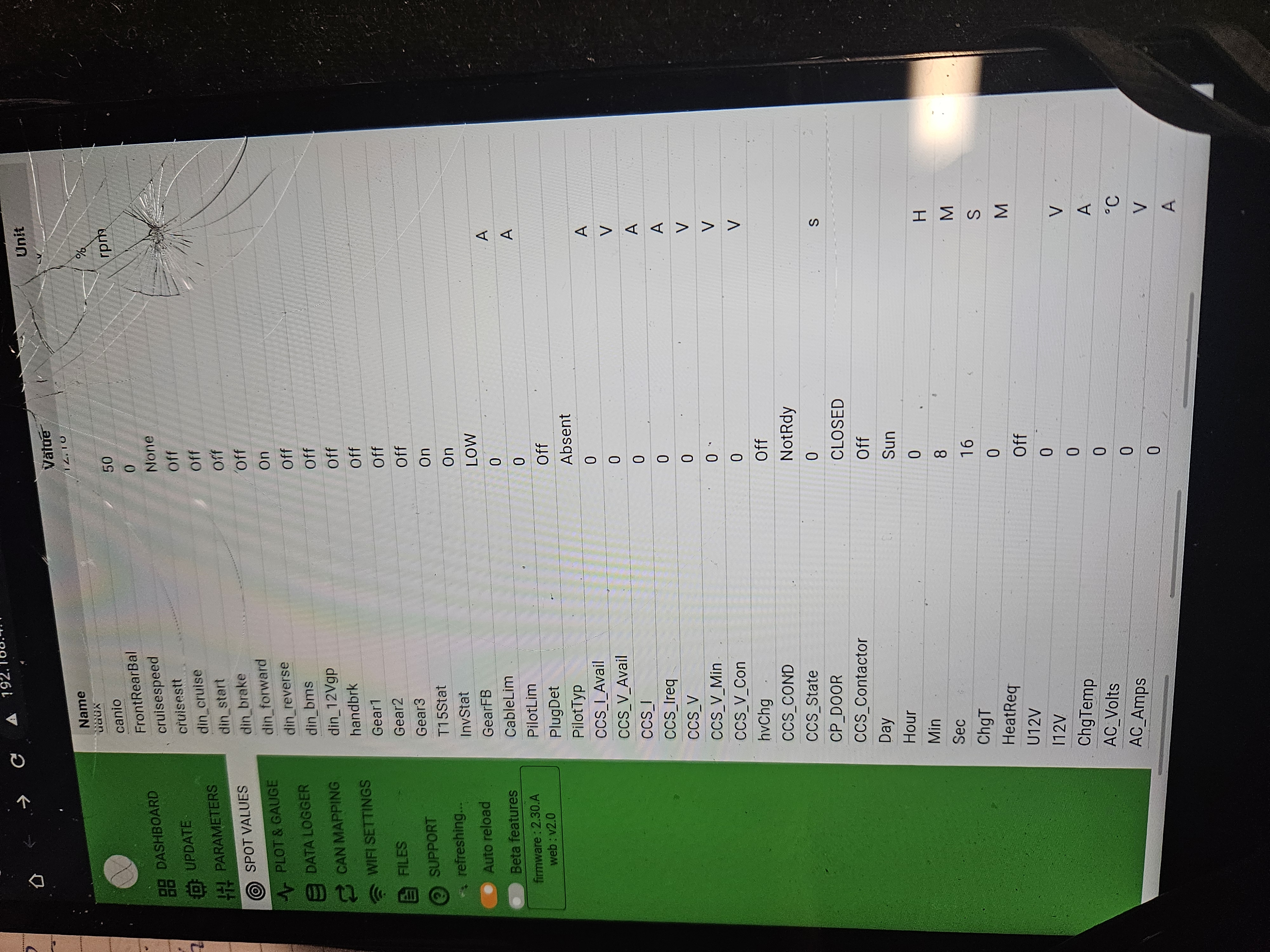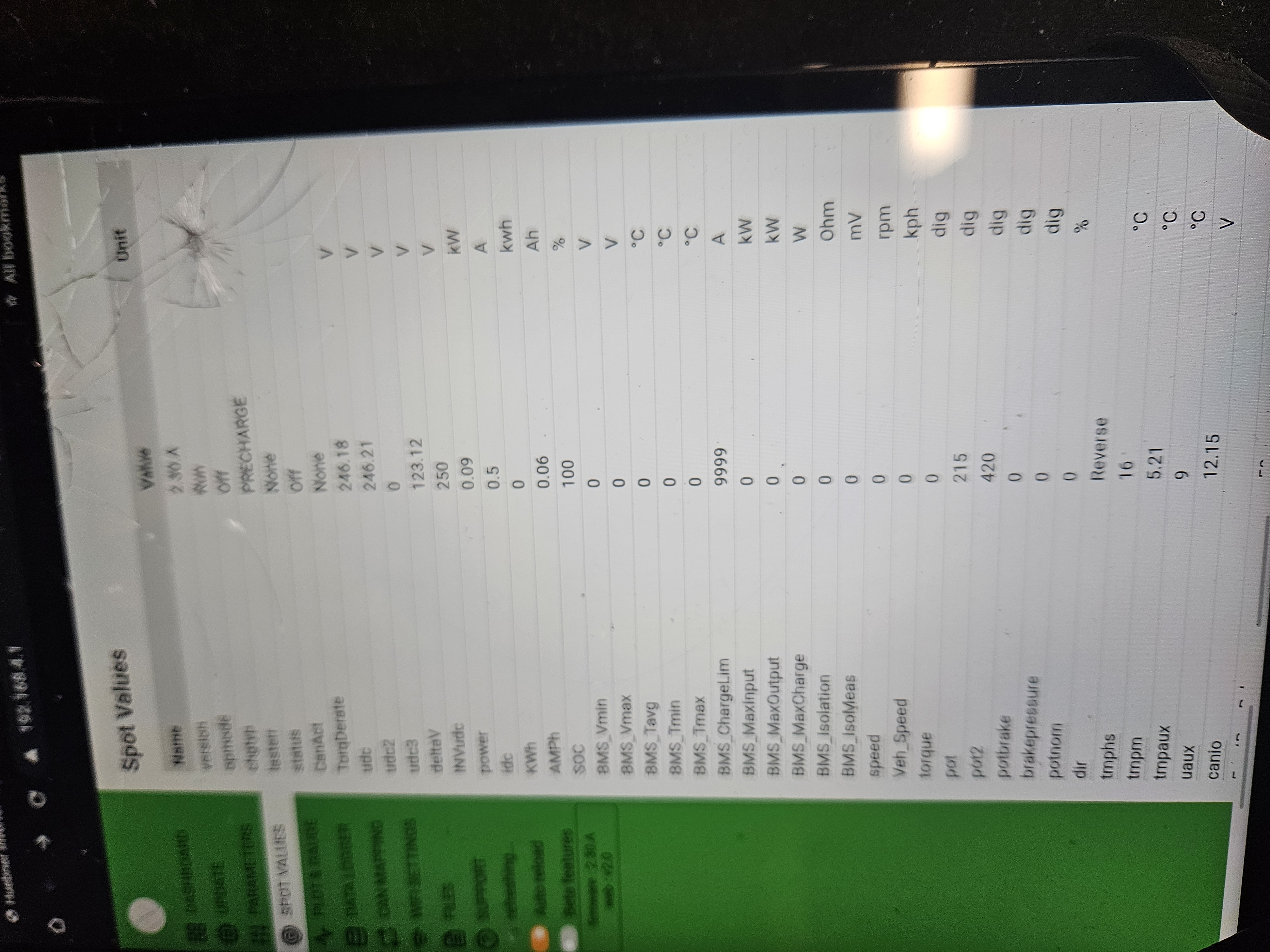 When i changed the inverter can from can1 to can2 the correct valve showed up on INVdcu,,,, but again when I spin the motor it drops back down to 50%.
