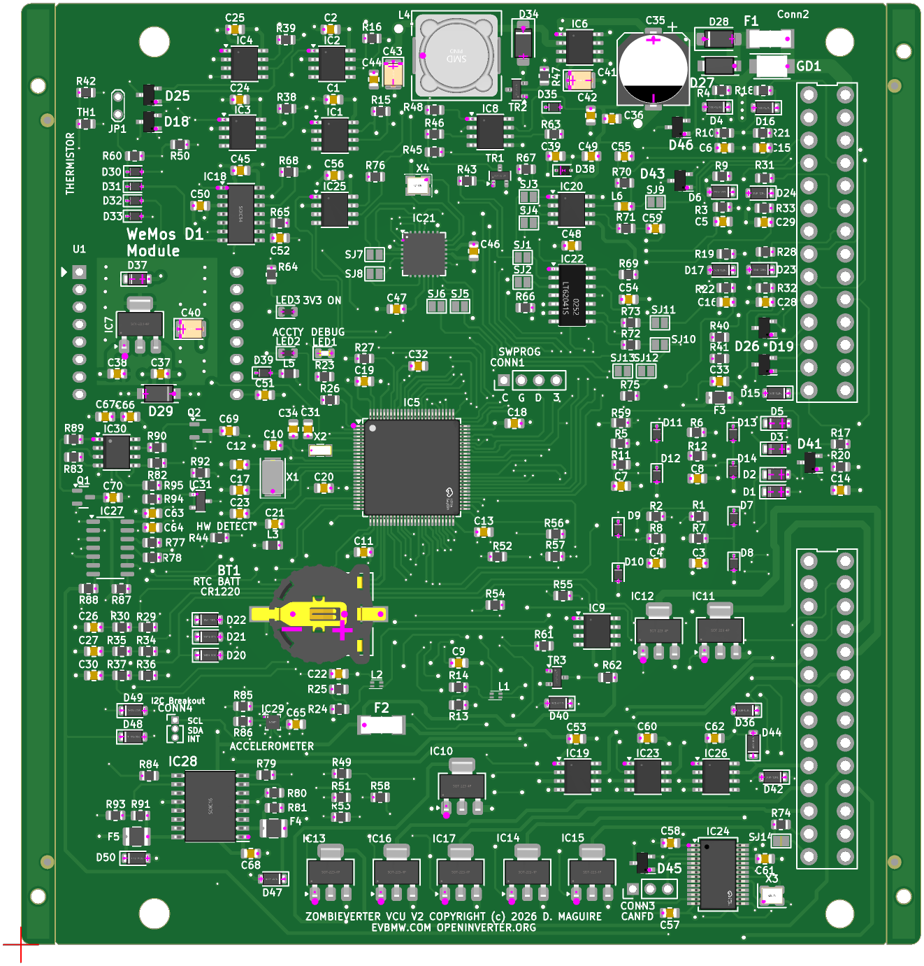 So after a long time here is the next hardware revision for the ZombieVerter VCU. Now before anyone gets too excited I want to make one point crystal clear : The existing hardware is NOT deprecated and will continue to be able to avail of future software releases that do not employ the added features of V1.2. If anyone needs this further clarified please let me know.