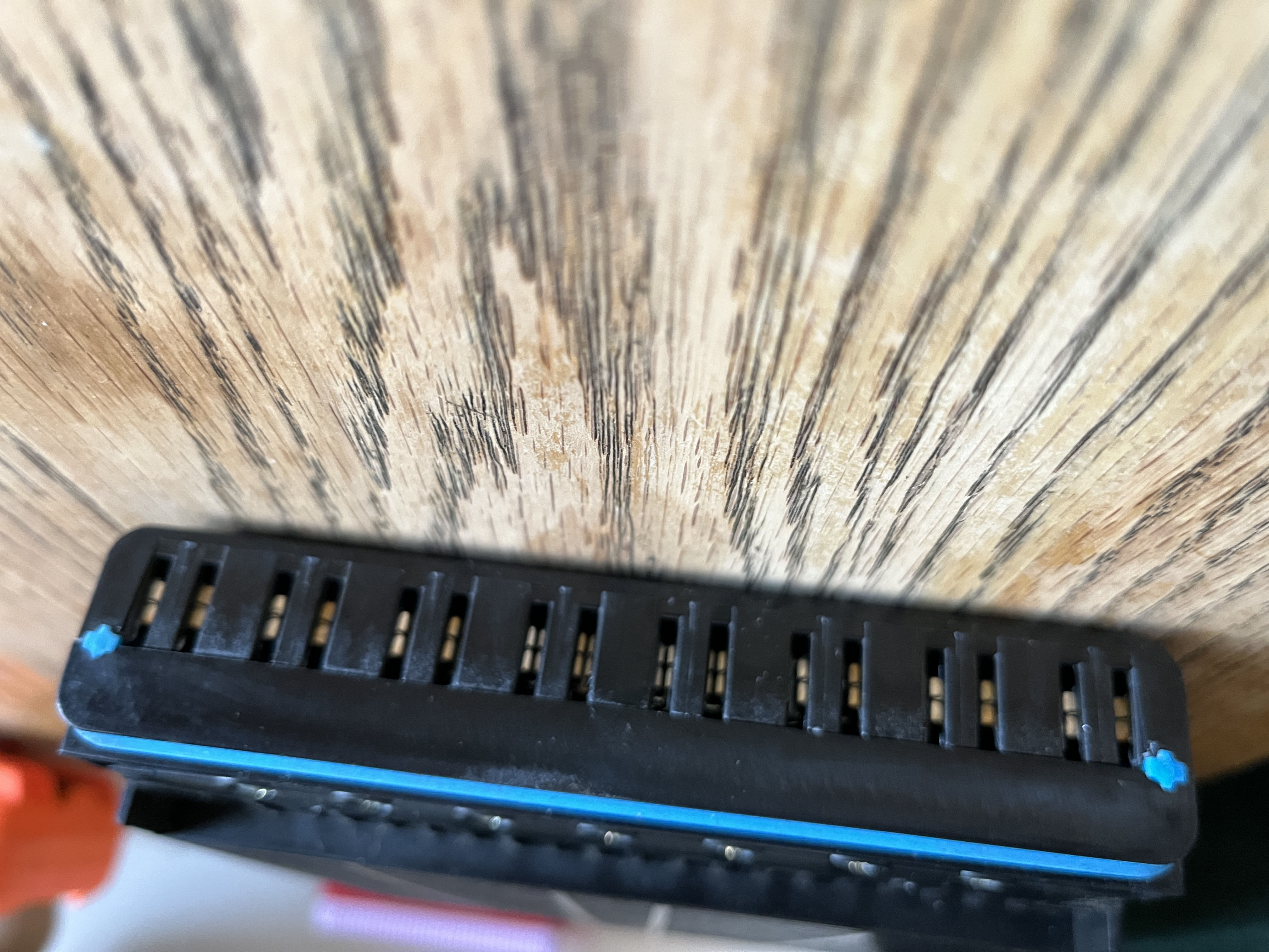 Setting up the WDR Automisering BMS today and it was going great. I downloaded the BusMust CAN GUI to confirm the CAN dongle works. I figured out how to download and open the WDR GUI and it seemed awake. Then i disconnected 12V while i plugged the Ioniq CMUs into the battery modules. First the orange CMU harnesses were plugged into the front and rear of each module then each CMU was connected to the large black connector on the harness in the order of 1-2-3-4. Then i smelled the magic smoke and about 10 seconds later saw a swirl of smoke coming out of the CMU connected to 2 where the yellow arrow is. AHHHHHHH! I frantically managed to unplug all the CMUs in about 10 seconds. The other 3 were cool to the touch and the hot one is smoked as you can see. The modules all measure between 23.84-23.87V.