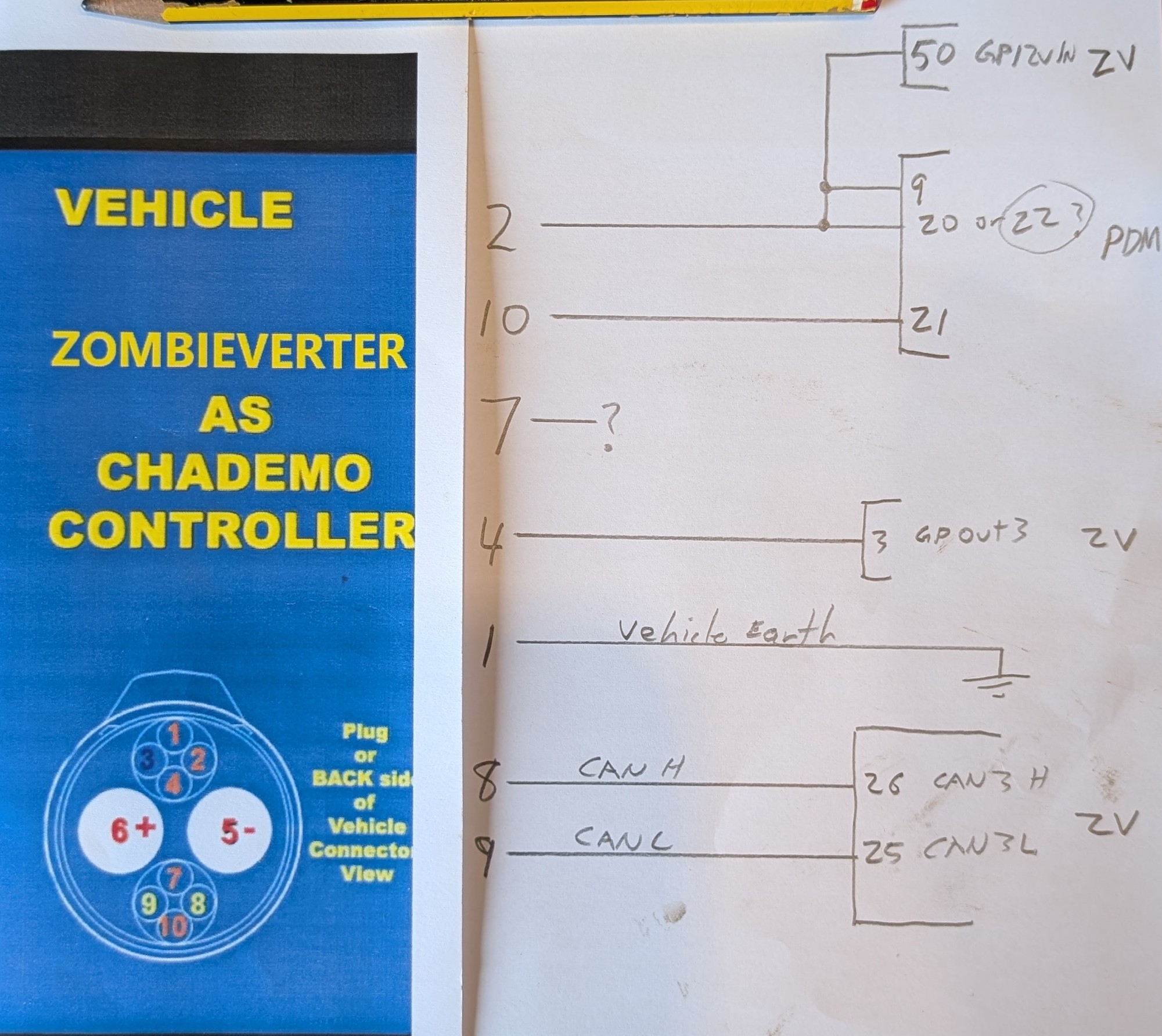 Also pin 7 Chademo currently isn't connected, but the diagram shows it connected to a 12v pullup resistor.
