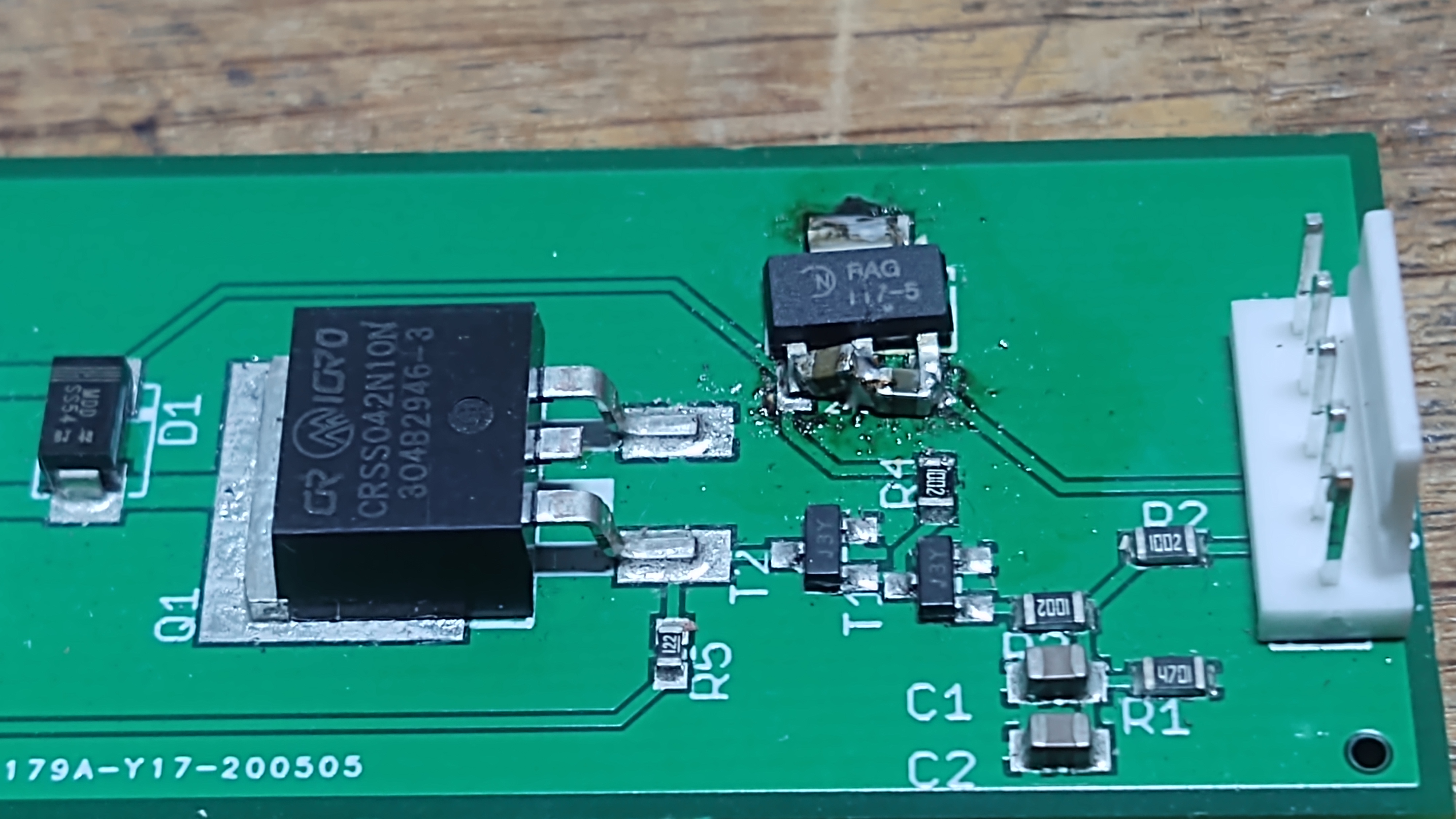 If you look carefully you can also see where I messed up the board by replacing the voltage regulator too many times and had to use a link wire.