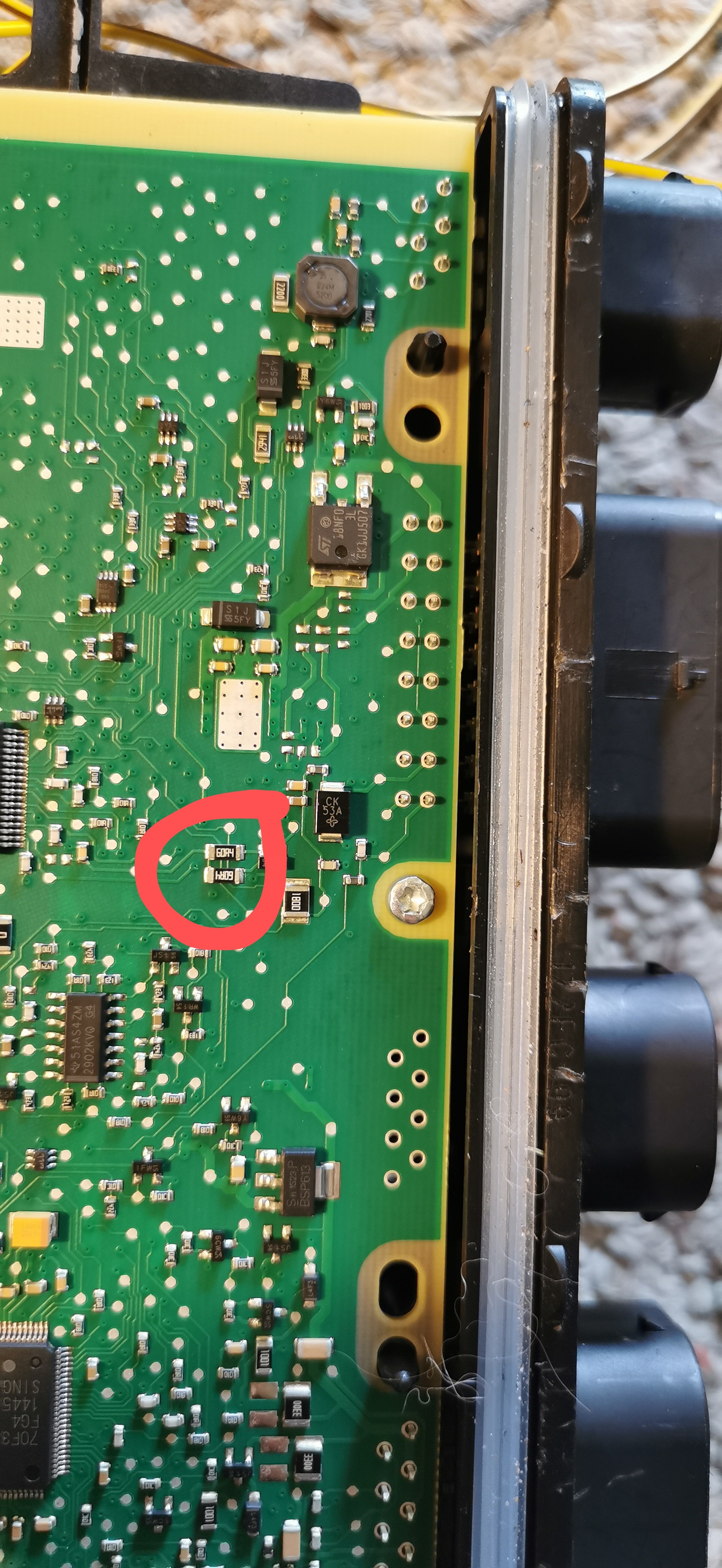 Cool. Looks like removing these two 60ohm resistors joined in series removed the CANbus termination, so the LIM can be put anywhere on the bus.