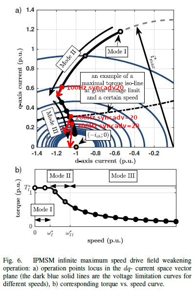 I'm trying to beat myself in my syncadv game using a custom frequency-dependent MTPA function like this. Not much luck so far. Still needs syncadv to perform well, which is a mystery to me. I'm also disabling the FW controller because it's so uncontrollable and that's unacceptable for tests. Attached also some drawings that probably mostly show I'm descending into complete madness.