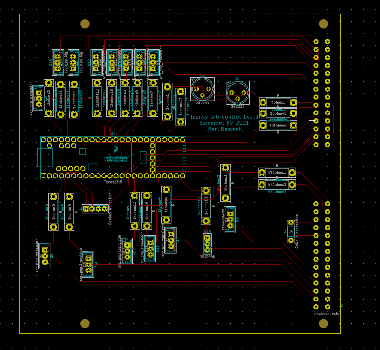 Talking of VCU, I made a V2 of my control circuit, this time stepping up to surface mounted components and proper sizing of traces. Everything on it seems to be working so far. I have tested each aspect separately so I am hoping that I should be able to plug it into the car and be most of the way to it working.